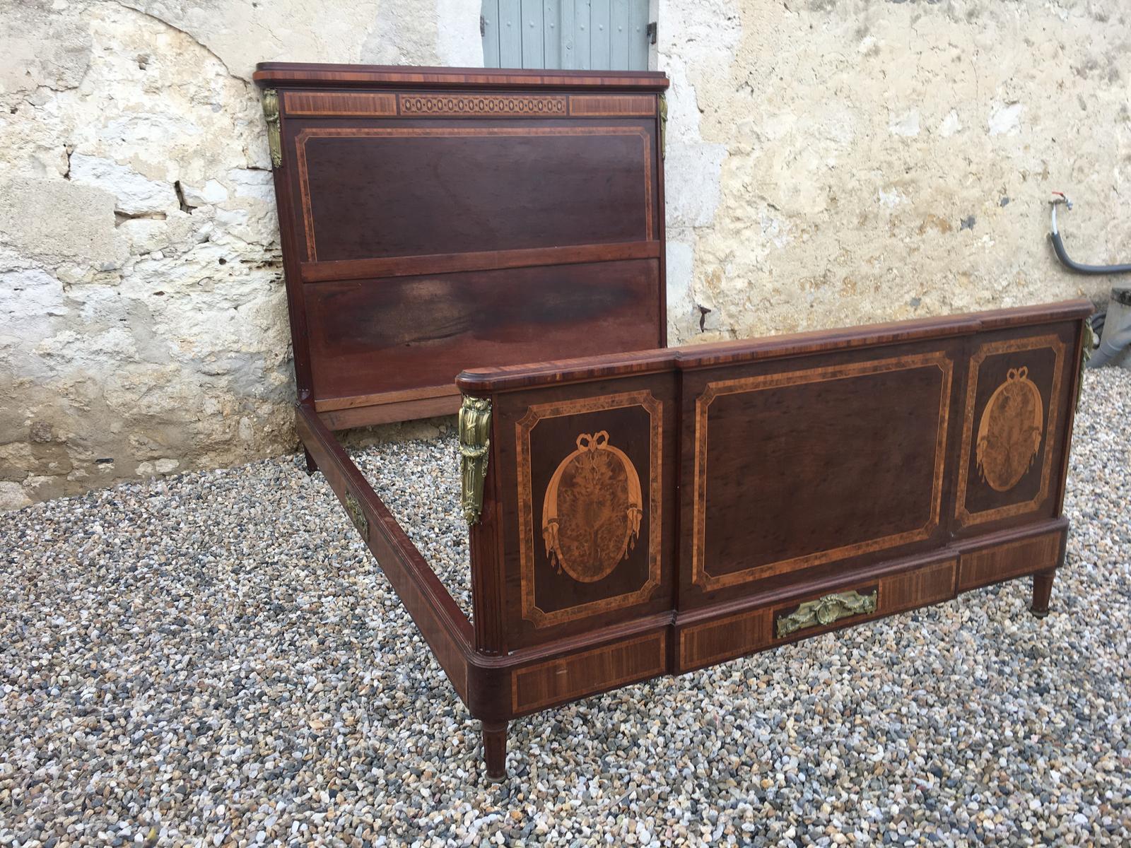 Exquisite Late 19th Century French Inlaid Marquetry King Size Bed