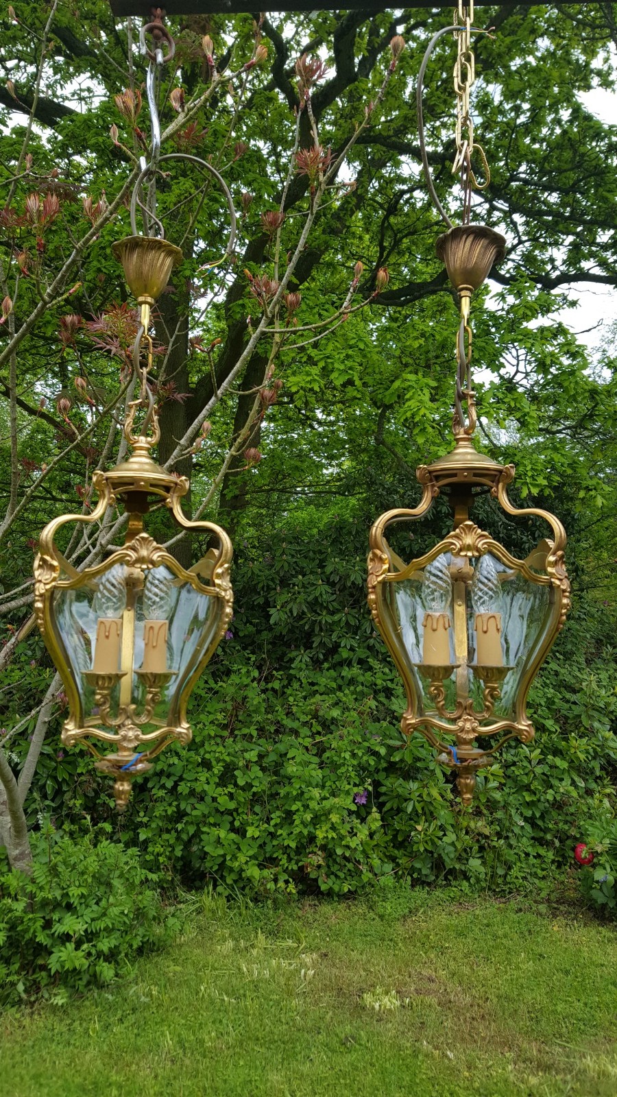 Exquisite Pair of Beautiful Unusual Vintage French Lanterns (1M)