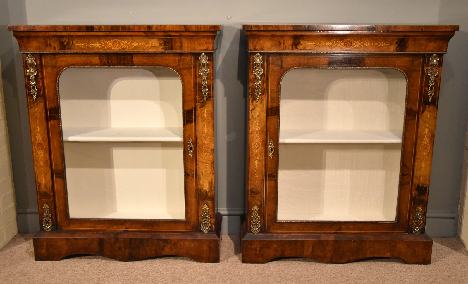 Exquisite Pair of Inlaid Walnut Brass Pier Cabinets (1 of 1)