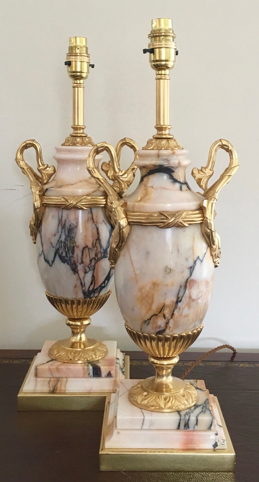 Exquisite Pair of Ormolu Mounted Marble Lamps
