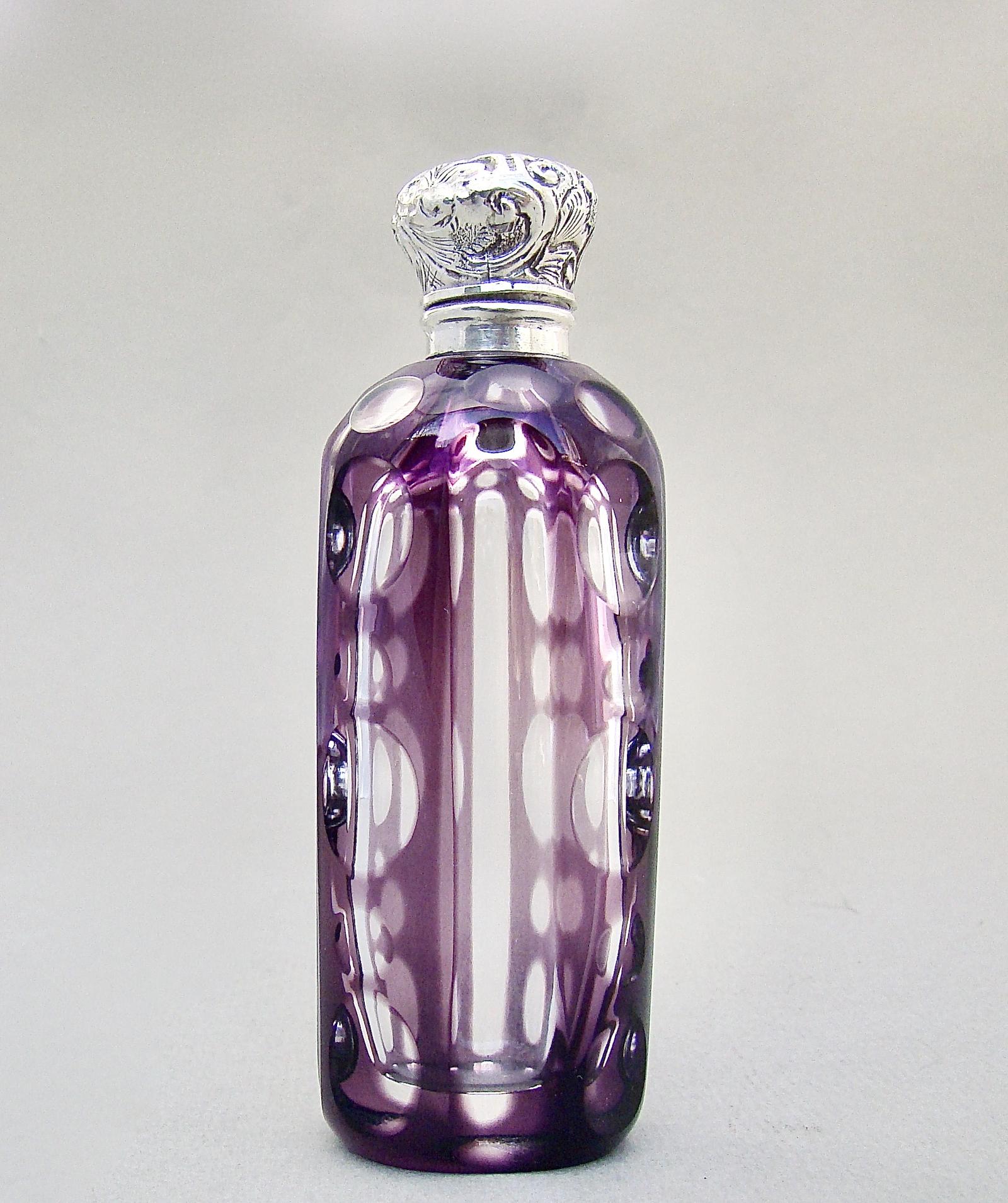 Exquisite Silver Mounted Amethyst Overlay Galss Scent Bottle c.1890