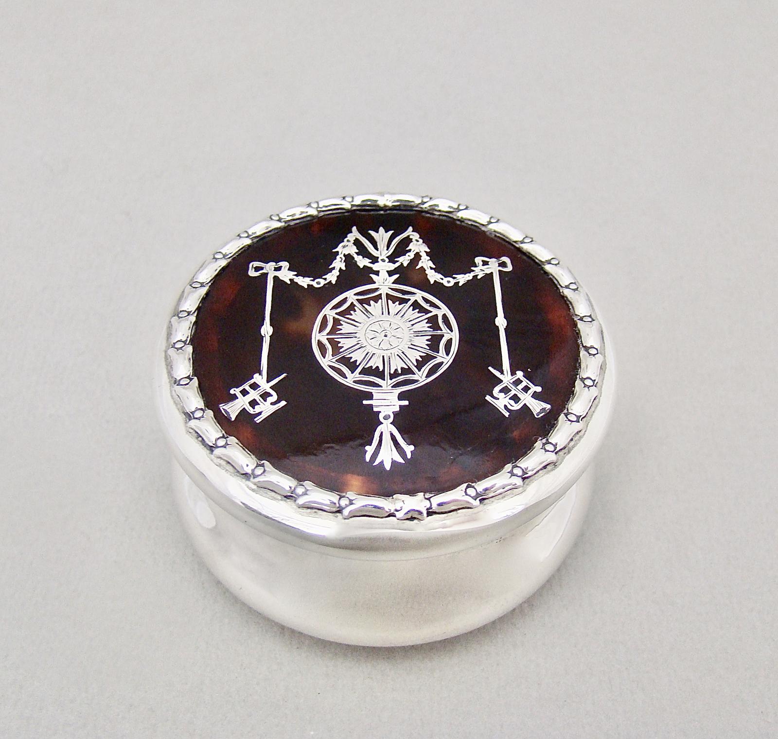Exquisite Silver Pique Tortoiseshell Jewellery Box / Trinket Box by William Comyns, London 1910