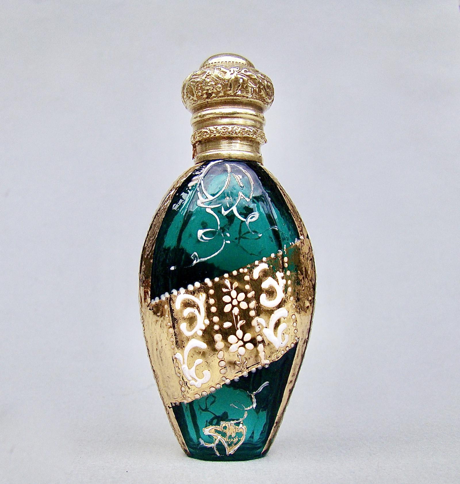 Exquisite Victorian Ormulu Mounted Bristol Green Enamelled Glass Scent Bottle c.1890
