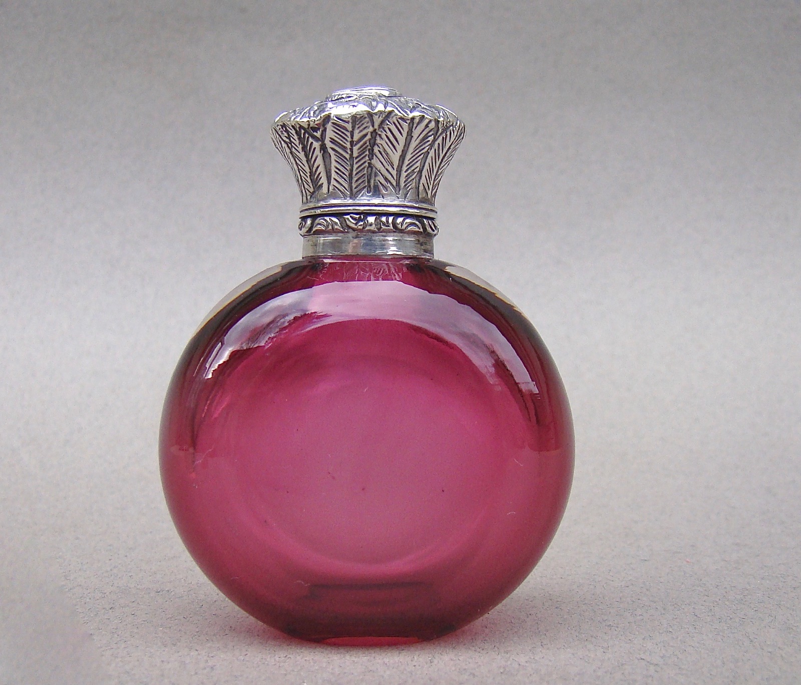 Exquisite Victorian Silver & Cranberry Glass Scent Bottle c.1890