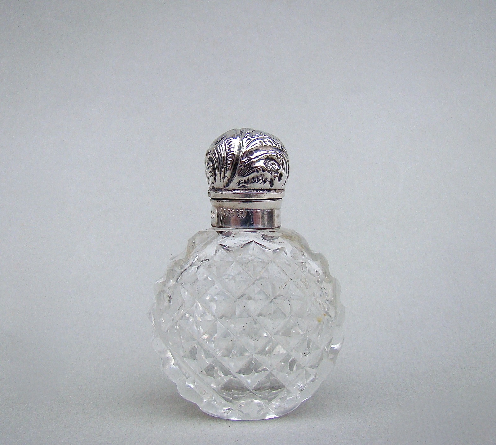 Exquisite Victorian Silver & Cut Glass Miniature Scent Bottle by the Mousley Brothers, Birmingham 1900