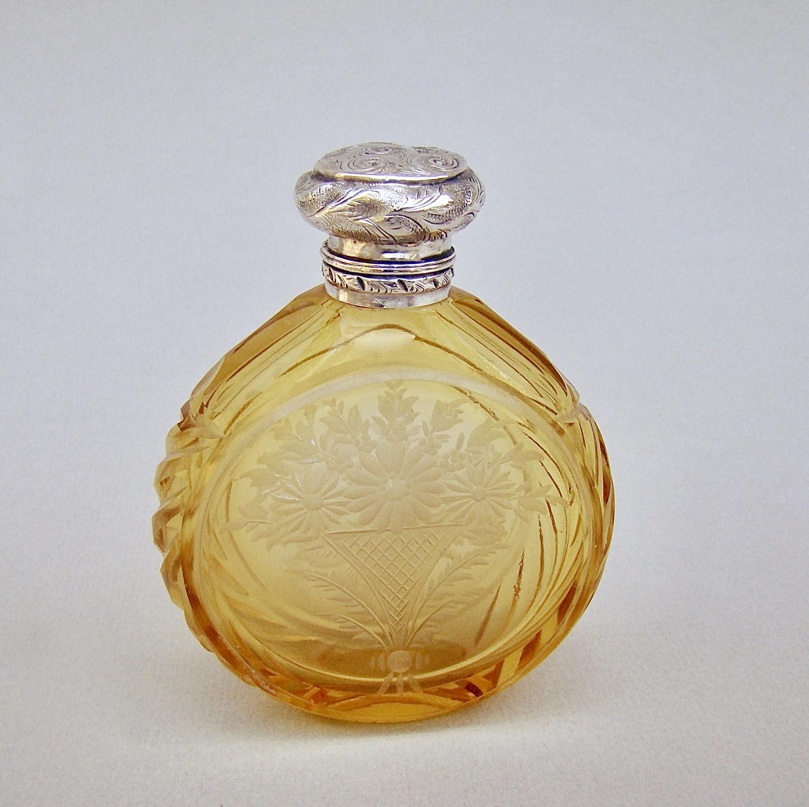 Exquisite Victorian Silver & Etched Amber Glass Scent Bottle c.1890