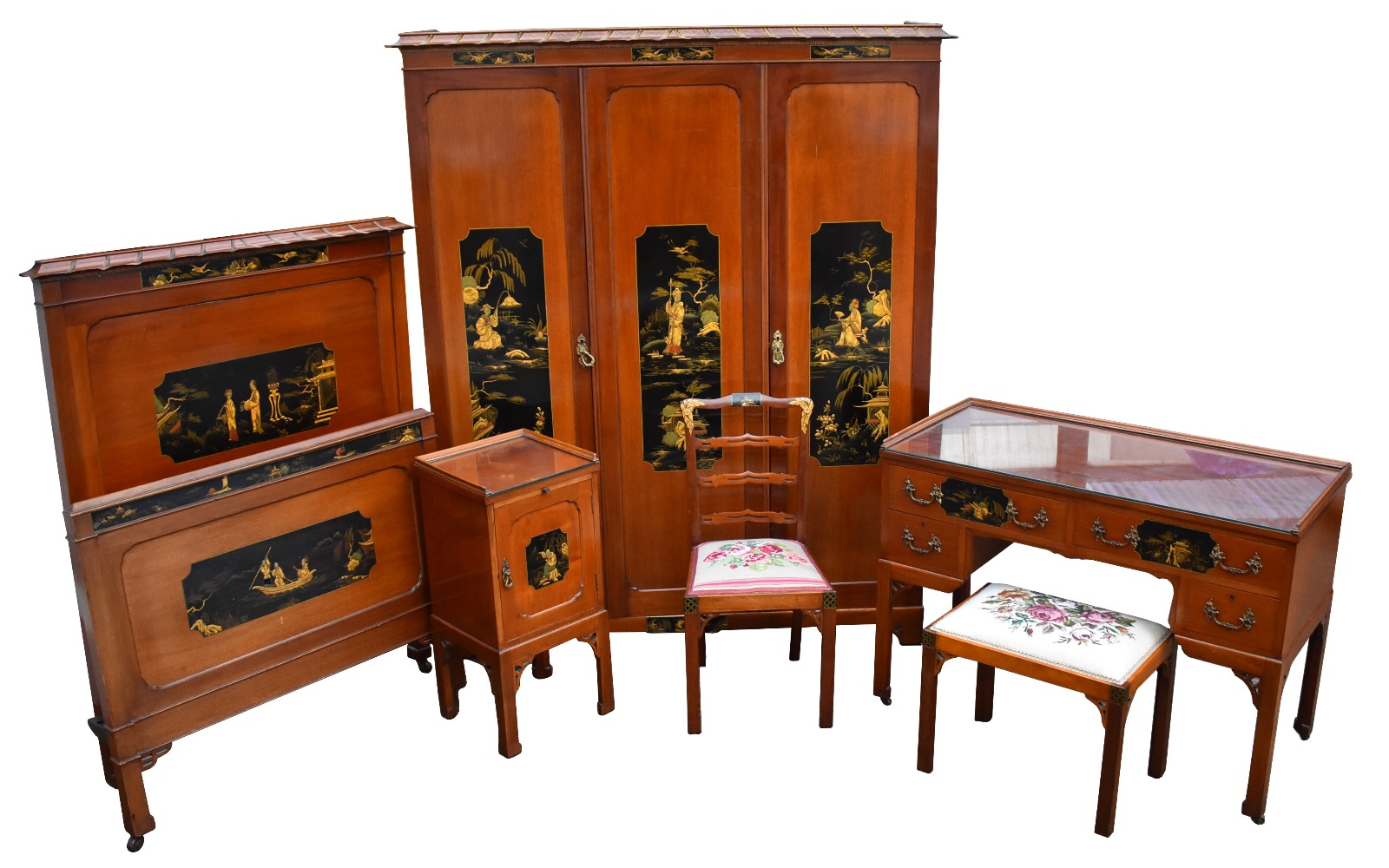 Extensive Mahogany & Chinoiserie Bedroom Suite c.1910