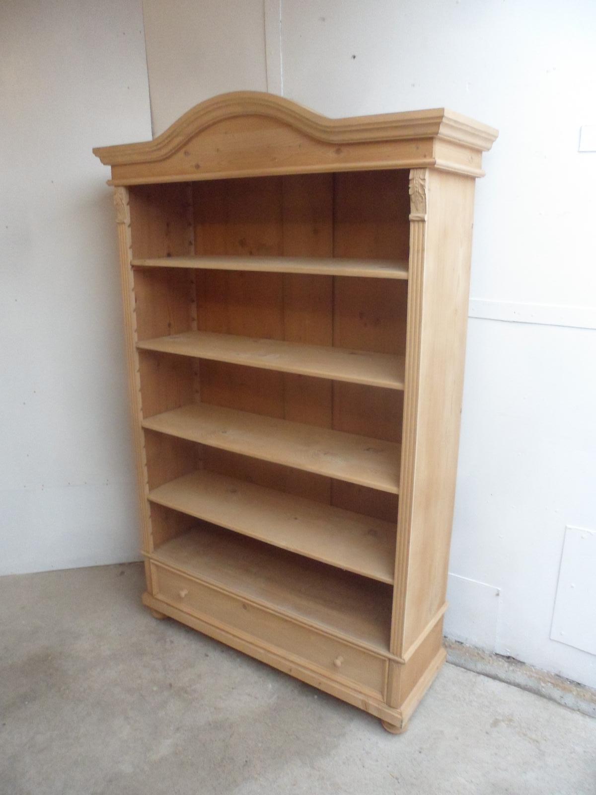 Extra Large Antique Pine Arch Top Adjustable Bookshelf to Wax / Paint