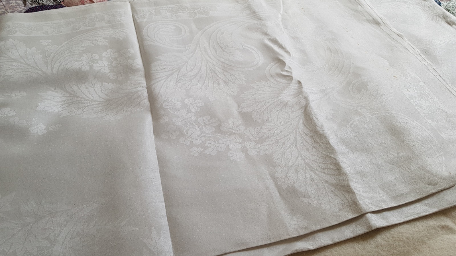 Extra Large Irish Linen Damask Banqueting Tablecloth, Eliza Ellice, 1870, Roses, Thistles, Shamrocks