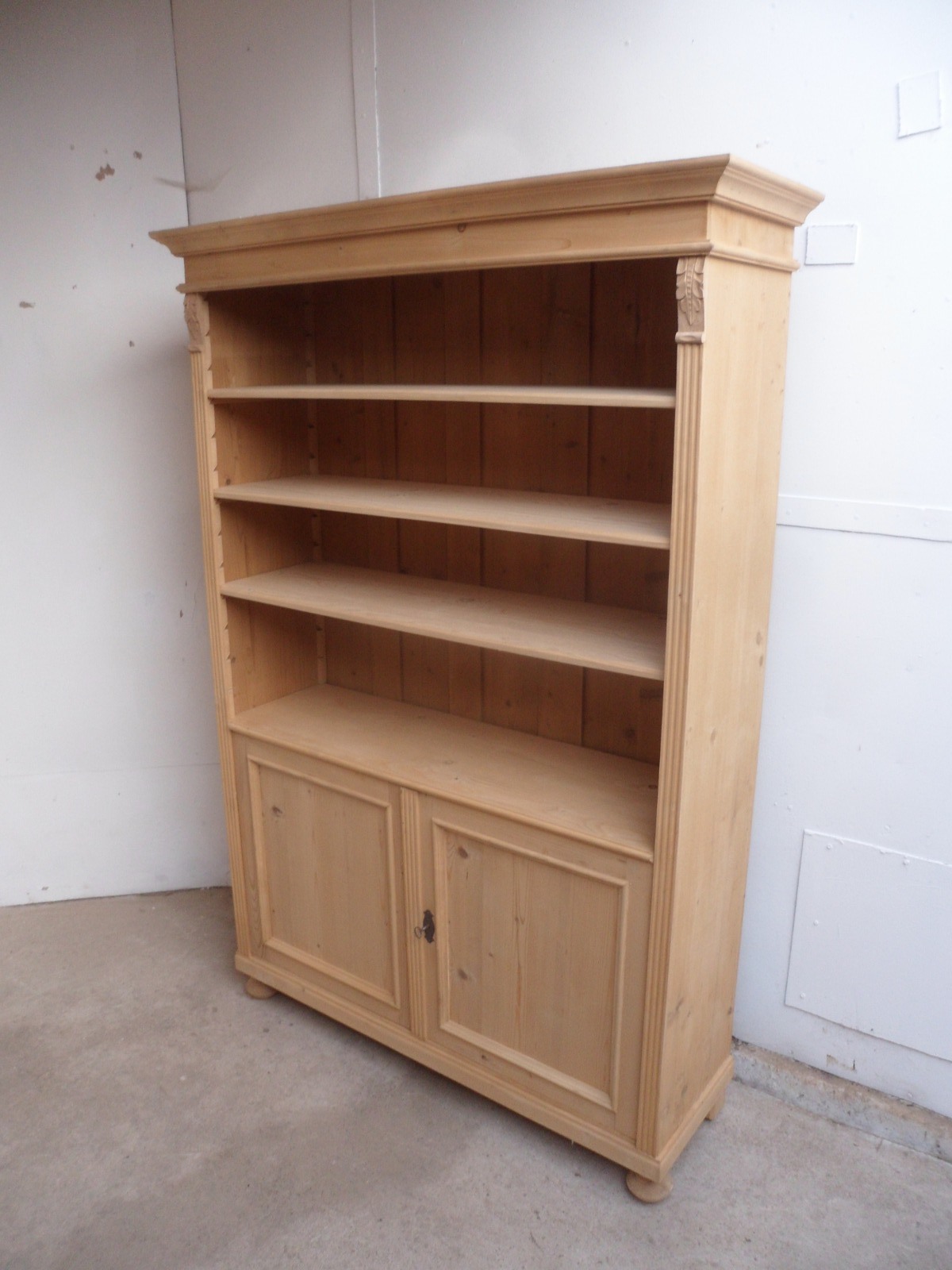 Extra Large Old Pine 2 Door Adjustable Bookshelf to wax / paint