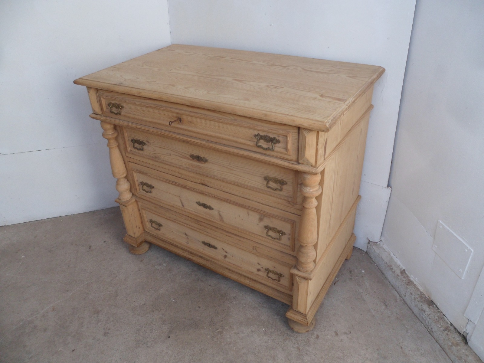 Extra Large Victorian Antique Pine 4 Drawer Columned Chest of Drawers