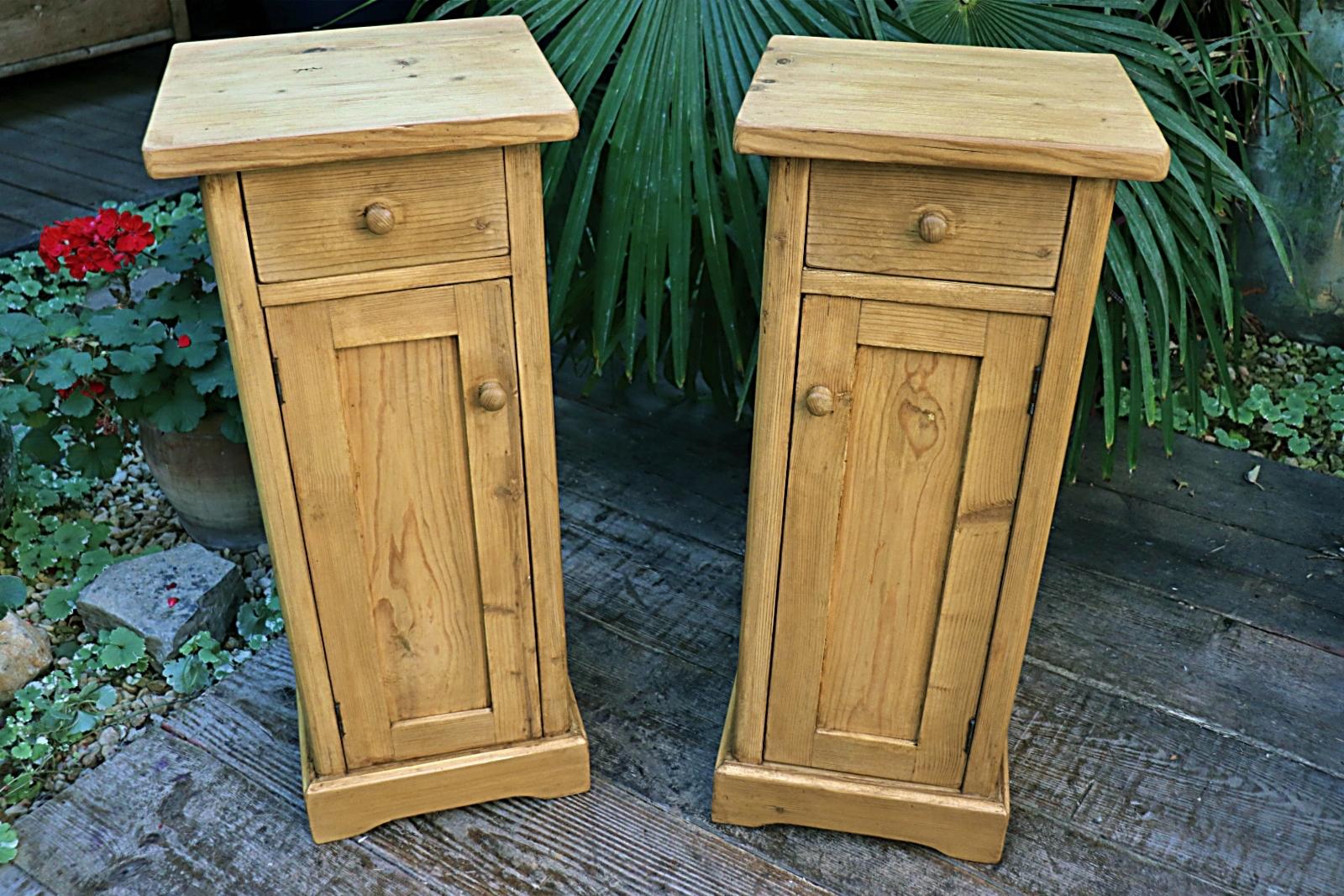 Extra Slim Pair Of Old Pine Bedside Cabinets/ Cupboards/ Lamp Table