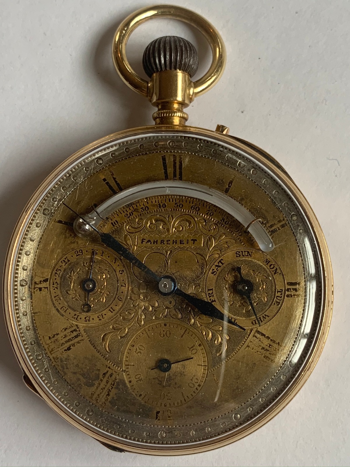 Extraordinary 18 Carat Gold Pocket Watch with Curved Thermometer