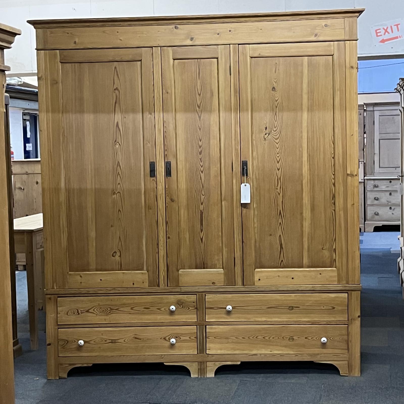 Extremely Large East German Triple Antique Pine Wardrobe