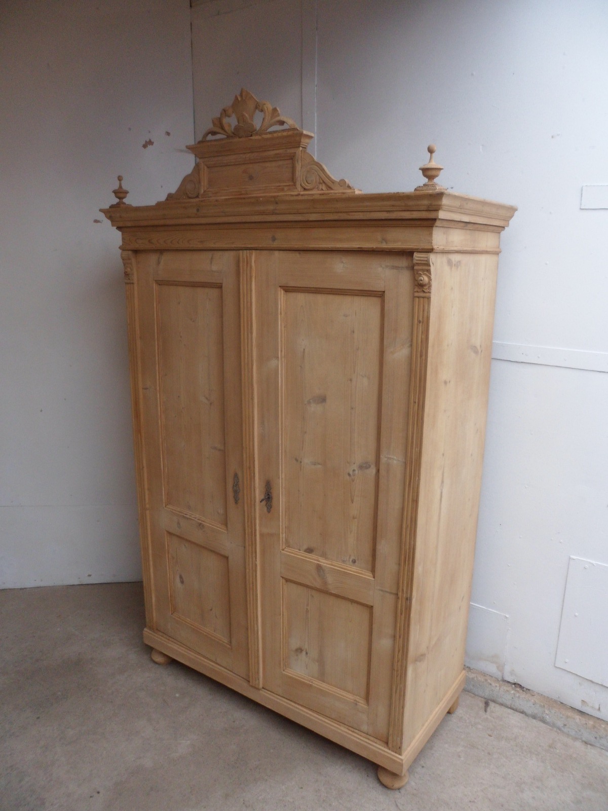 Extremely Pretty Large 2 Door Old Pine Cupboard / Wardrobe to paint / wax