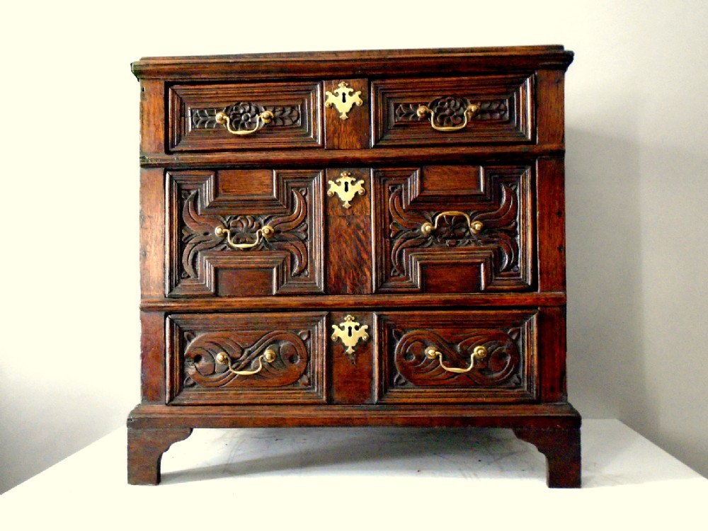 Extremely RAre 1St Period Dorset Carved! Small Oak Chest of Drawers,