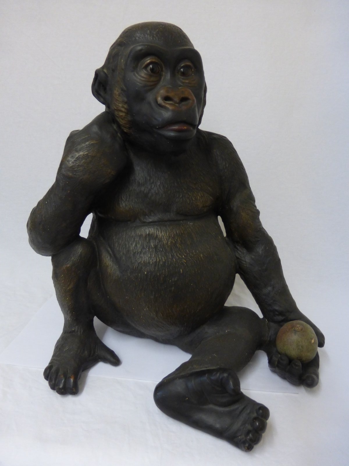 Extremely Rare Large Antique Terracotta Lifelike Baby Gorilla