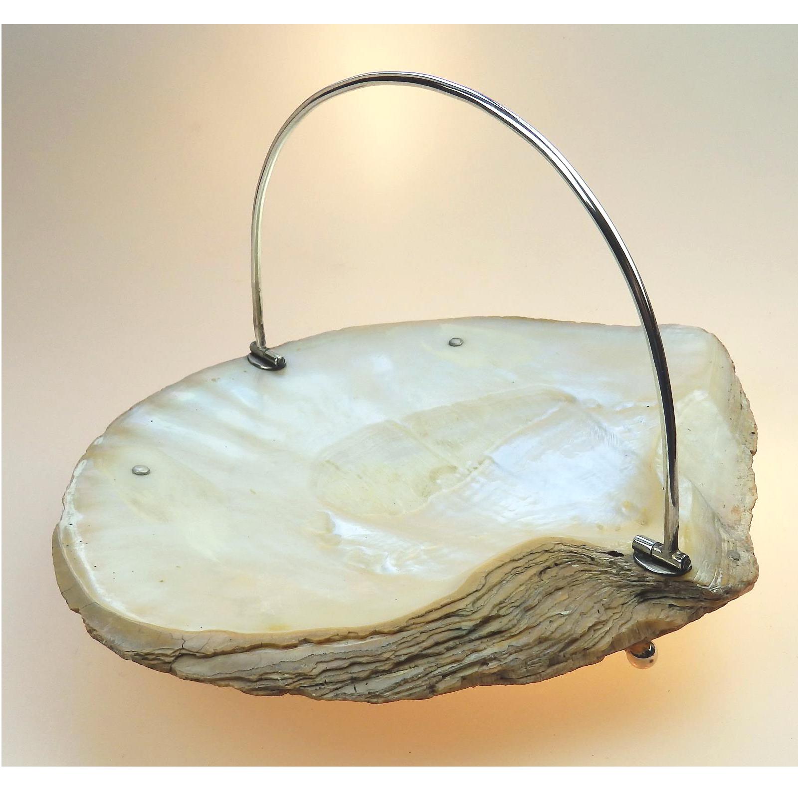 Extremely Rare & Large Solid Silver & Nacre Shell Caviar Clam Bowl c.1902