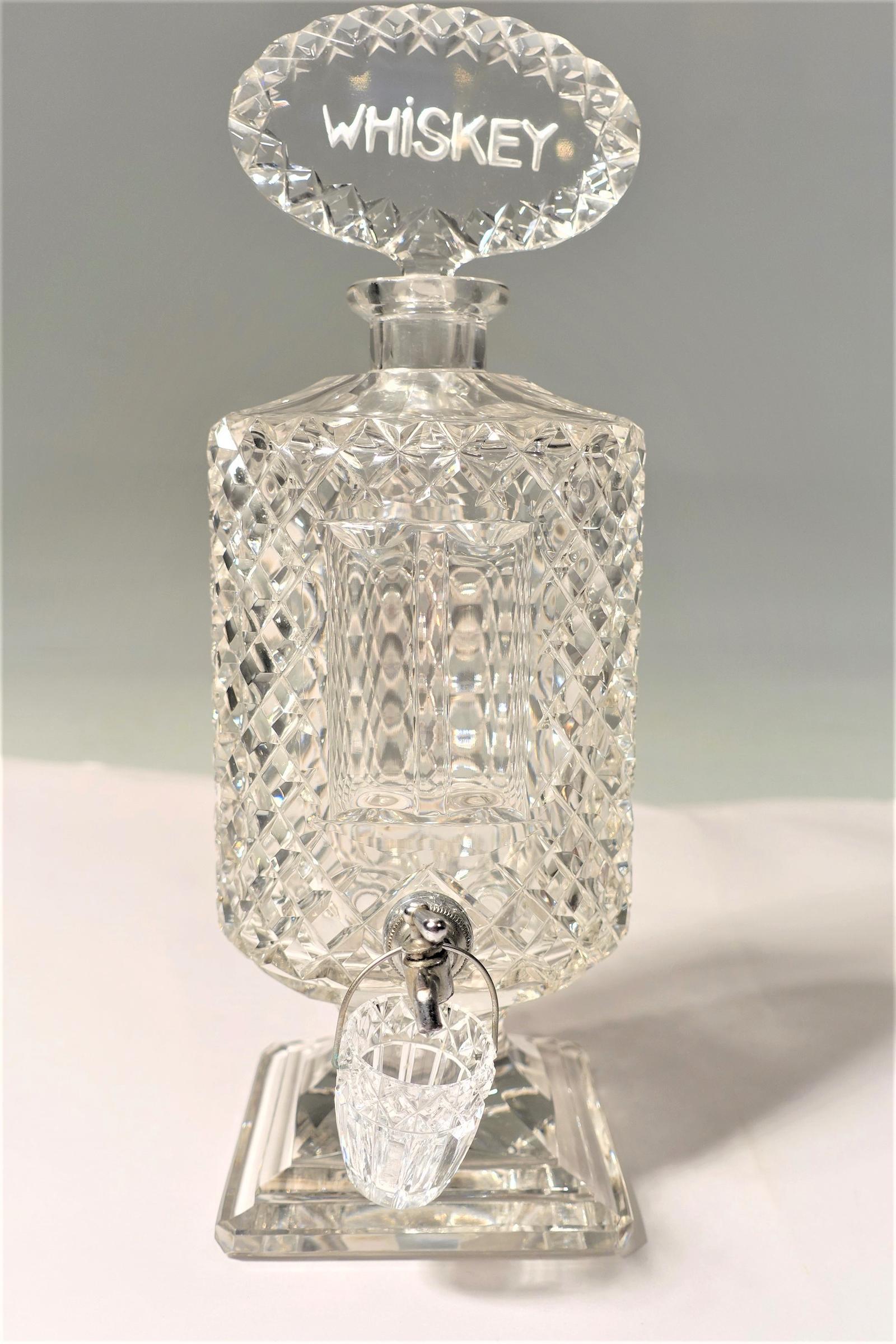 Extremely Rare Late 19th Century Lead Crystal Cut Glass Whiskey Dispenser