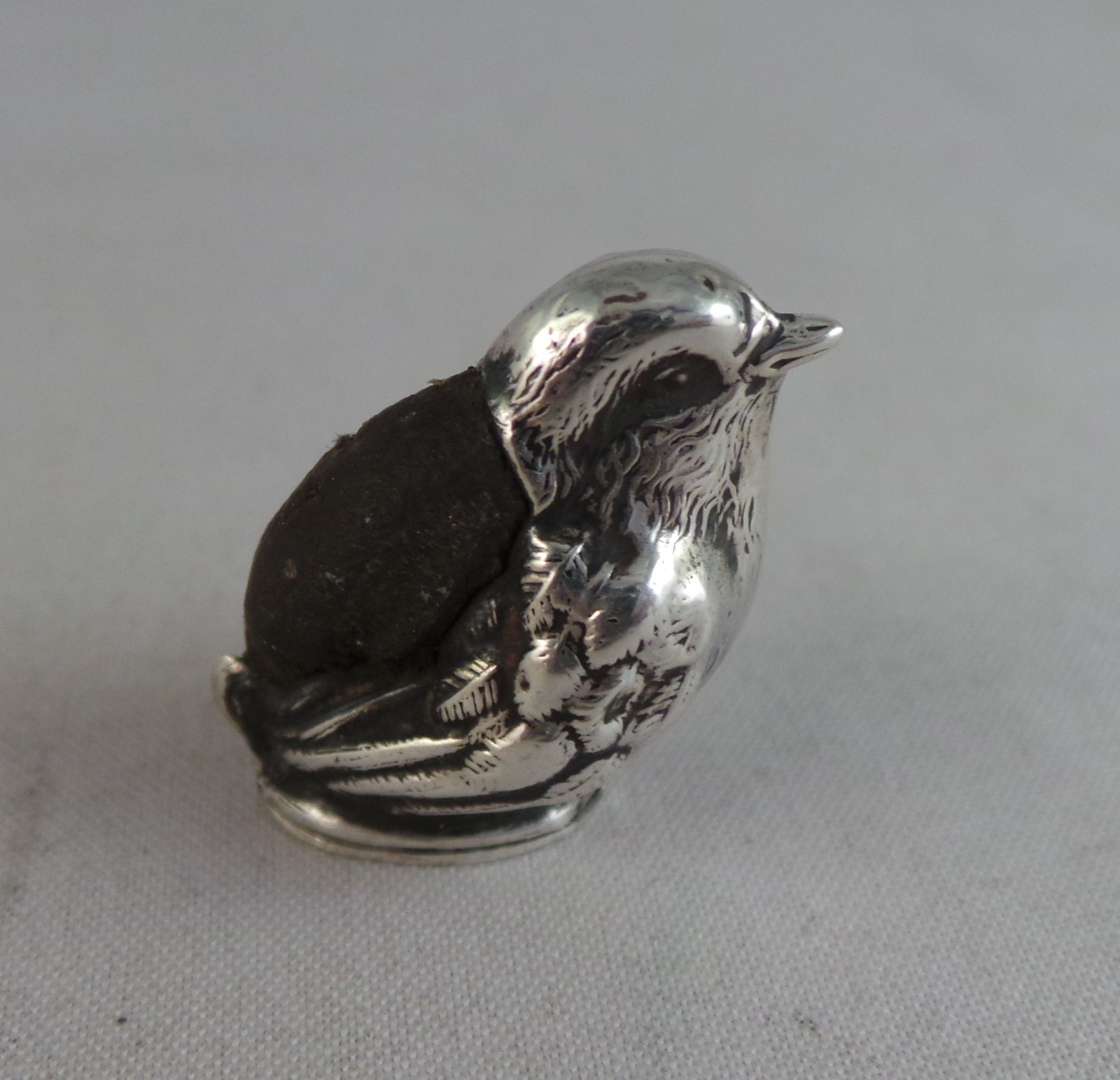 Extremely Rare Miniature Antique Silver Bird Pin Cushion Birmingham 1909