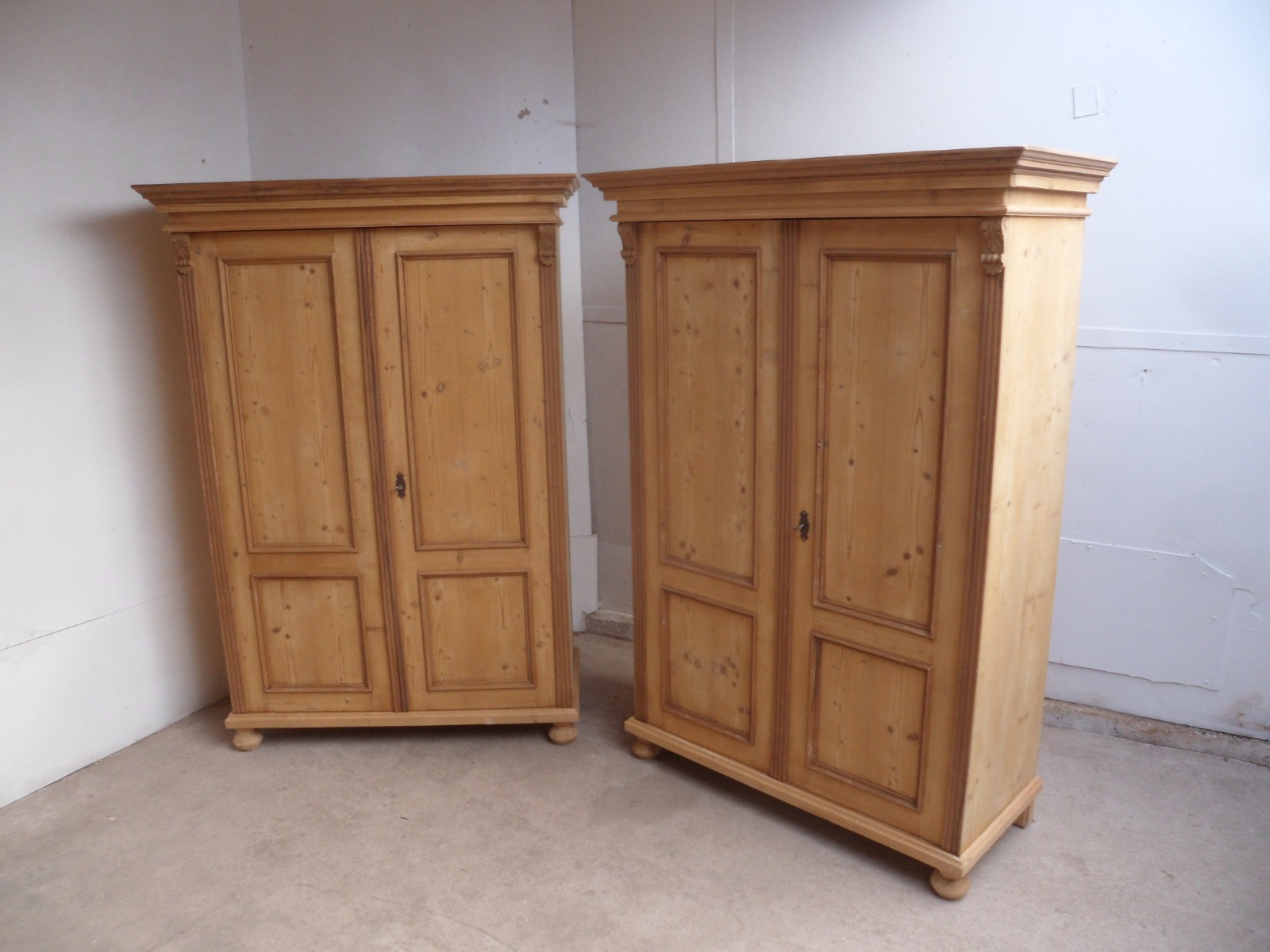 Extremely Rare Pair of Victorian Antique Pine Cupboard / Wardrobes to wax / paint
