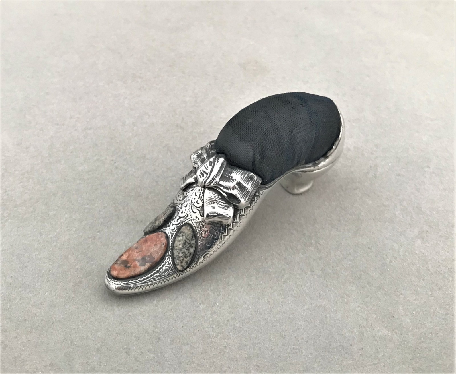 Extremely Rare Silver & Agate Novelty Shoe Pin Cushion
