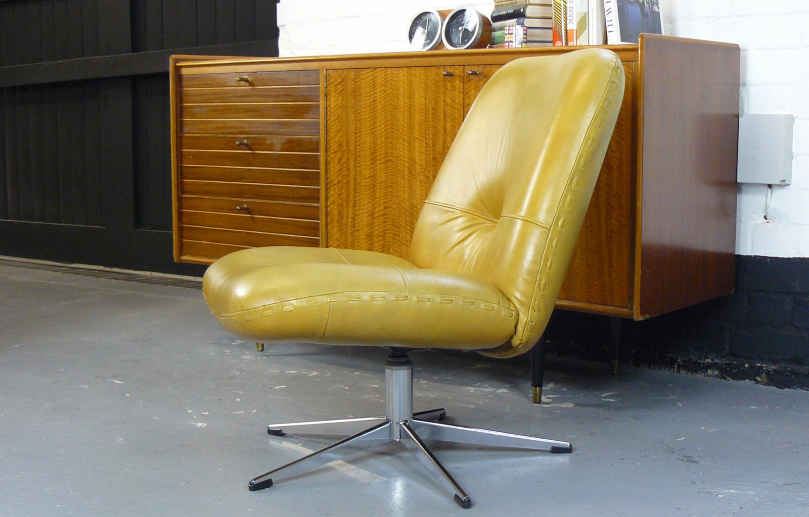 Eye Catching Vintage Mid Century Leather Swivel Lounge Chair of Smaller Proportions (1 of 1)