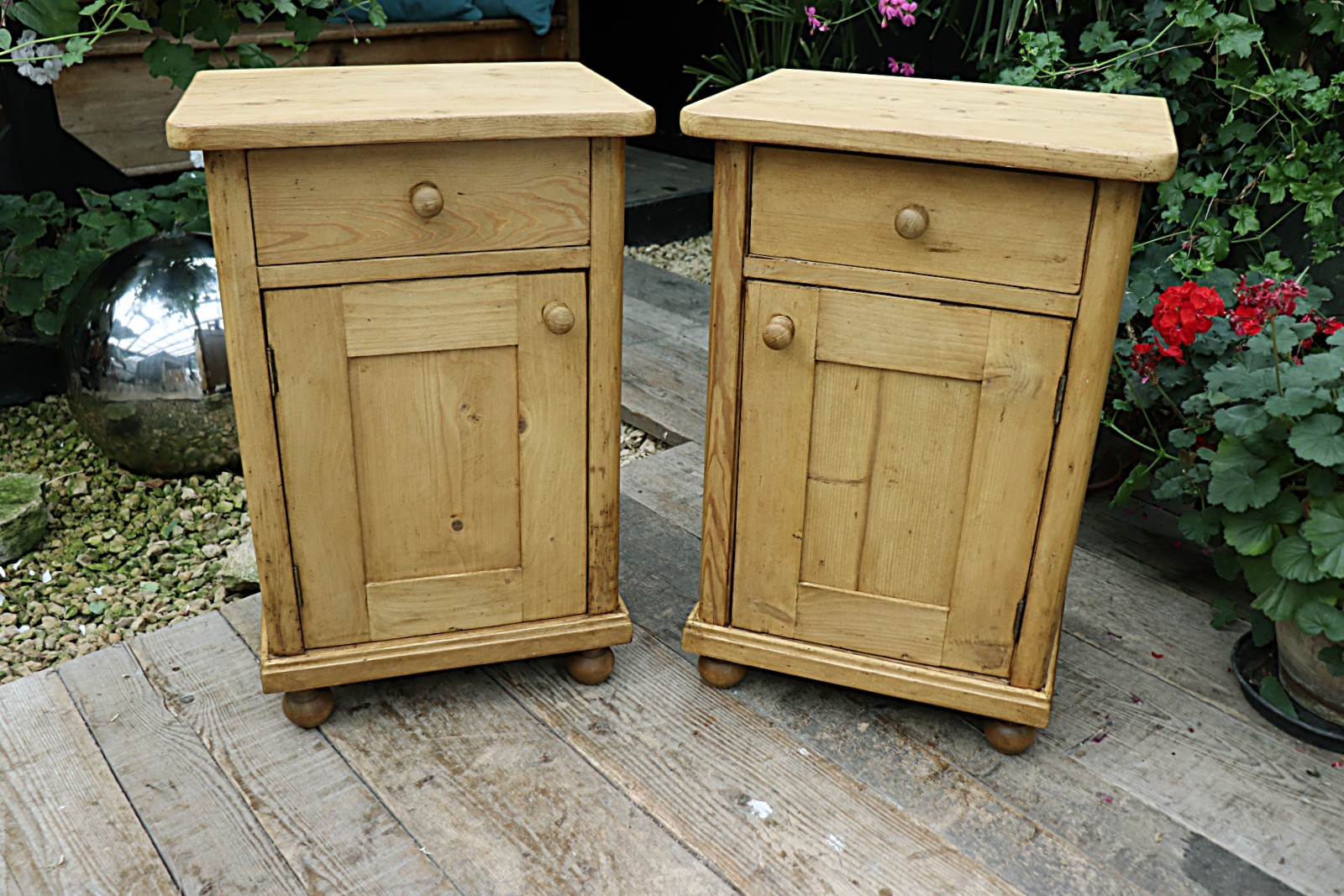 Fab! Chunky Pair of Old Antique Pine Bedside Cabinets / Cupboards - We Deliver!