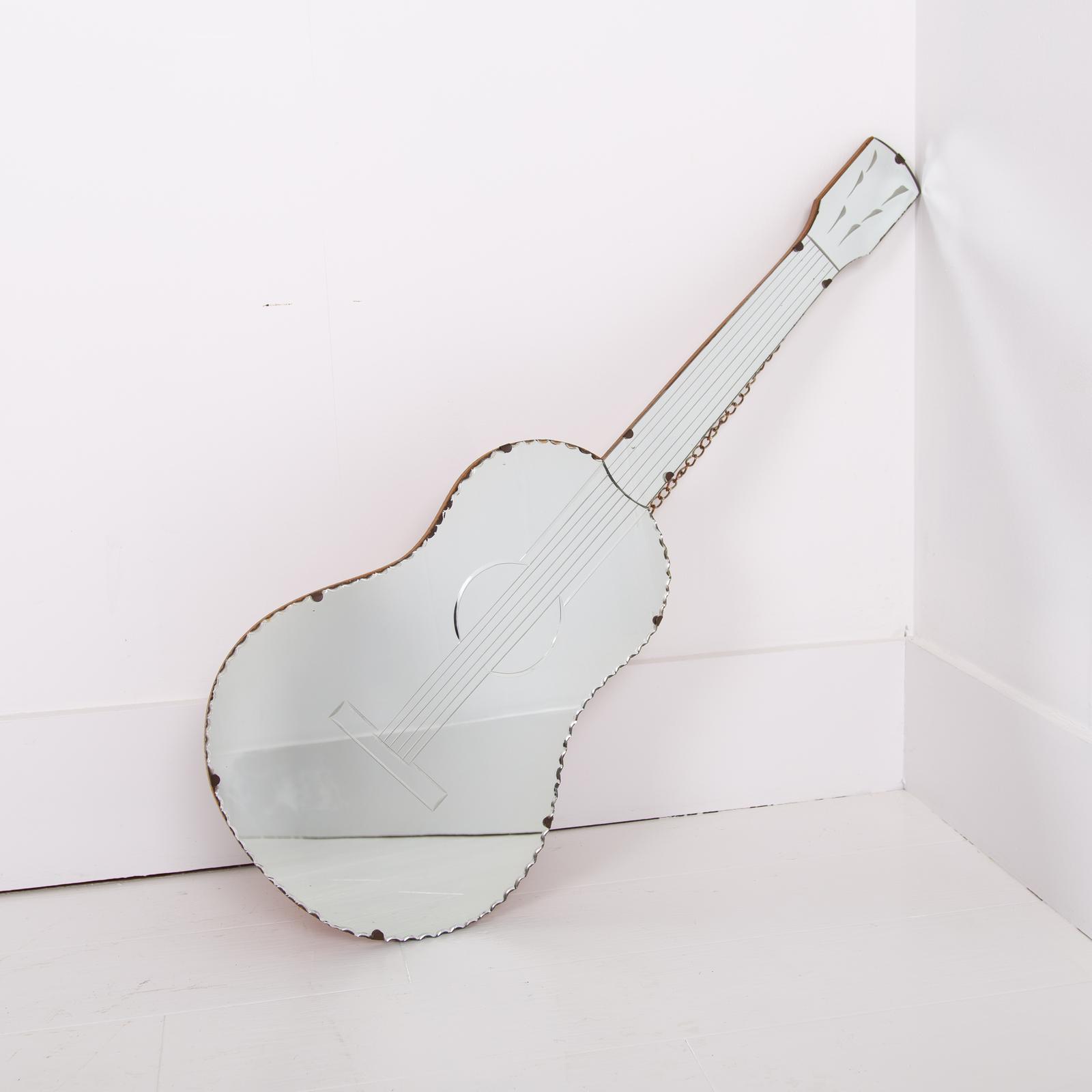 Fab Guitar Shaped Mirror Mid Century c.1950