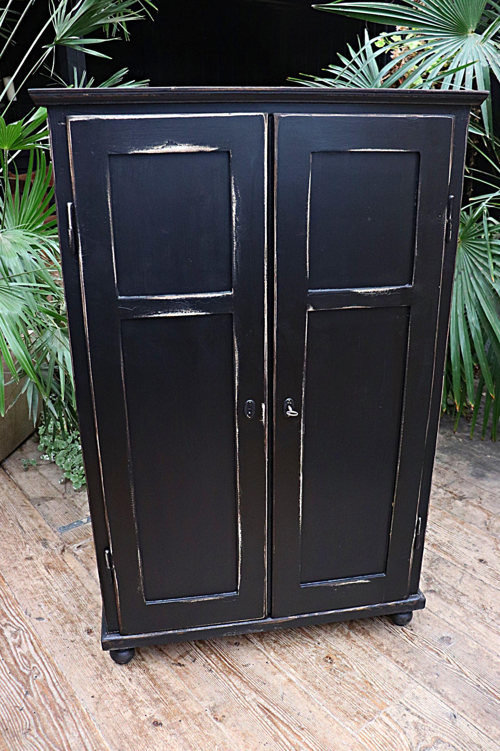 Fab! Old Pine / Black Painted 2 Door Cupboard Linen / Larder