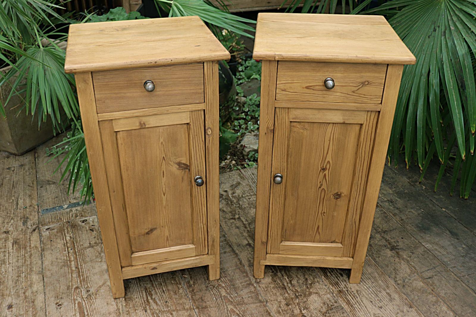 Fab Pair of Old Mid Century Pine Bedside Cabinets / Cupboards / Lamp Tables