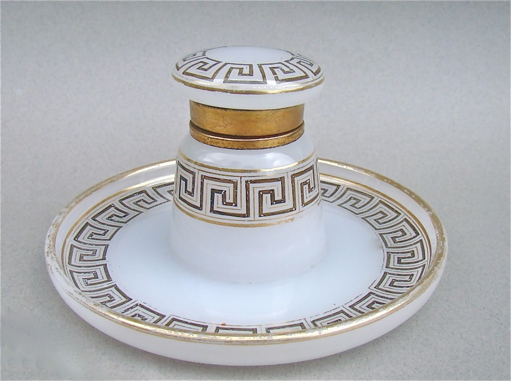 Fabulous 19th Century French Large Opaline Glass Inkwell c.1890