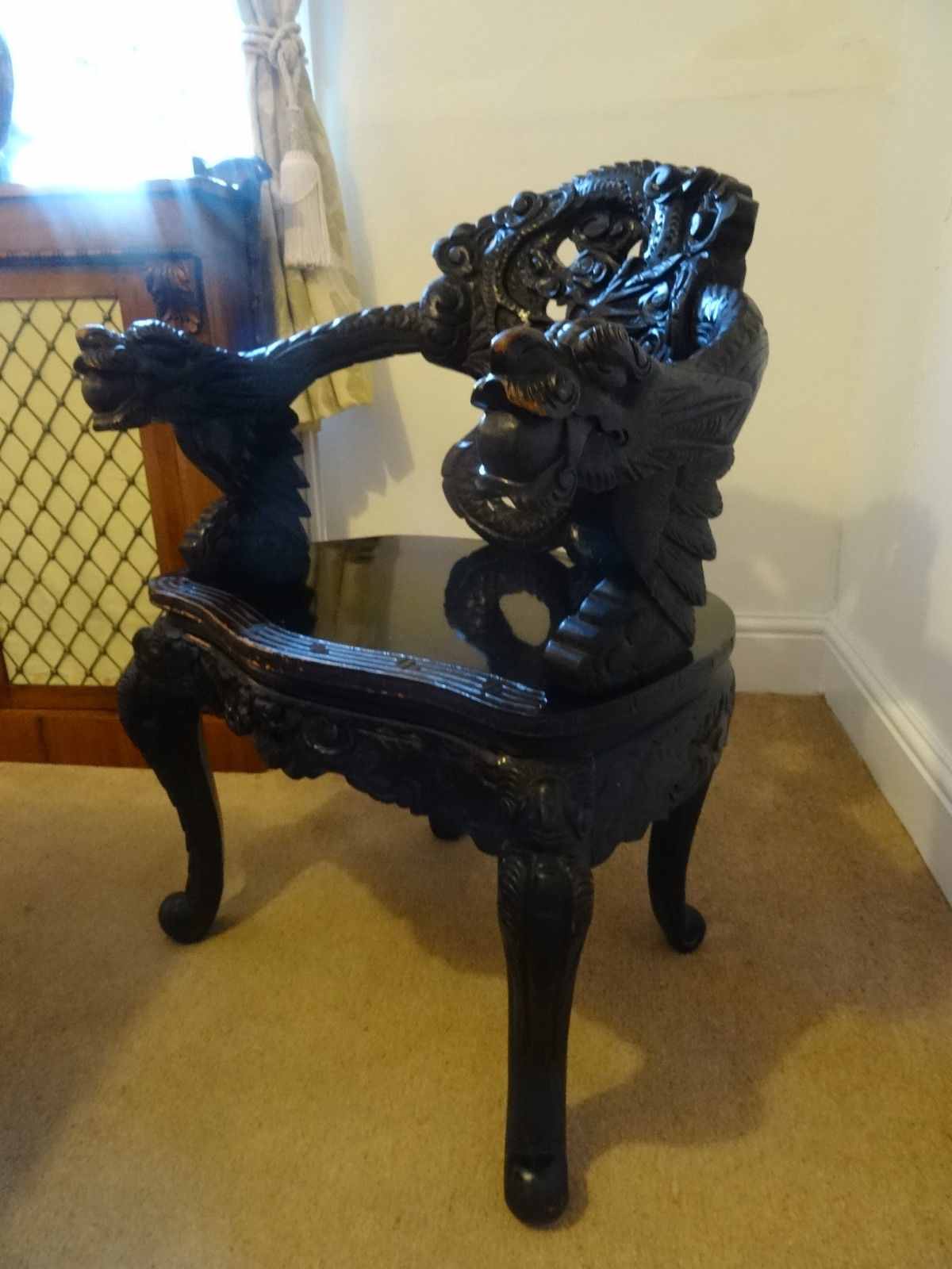 Fabulous 19thc Period Antique Chinese Dragon Carved Ebony Padauk Desk Armchair