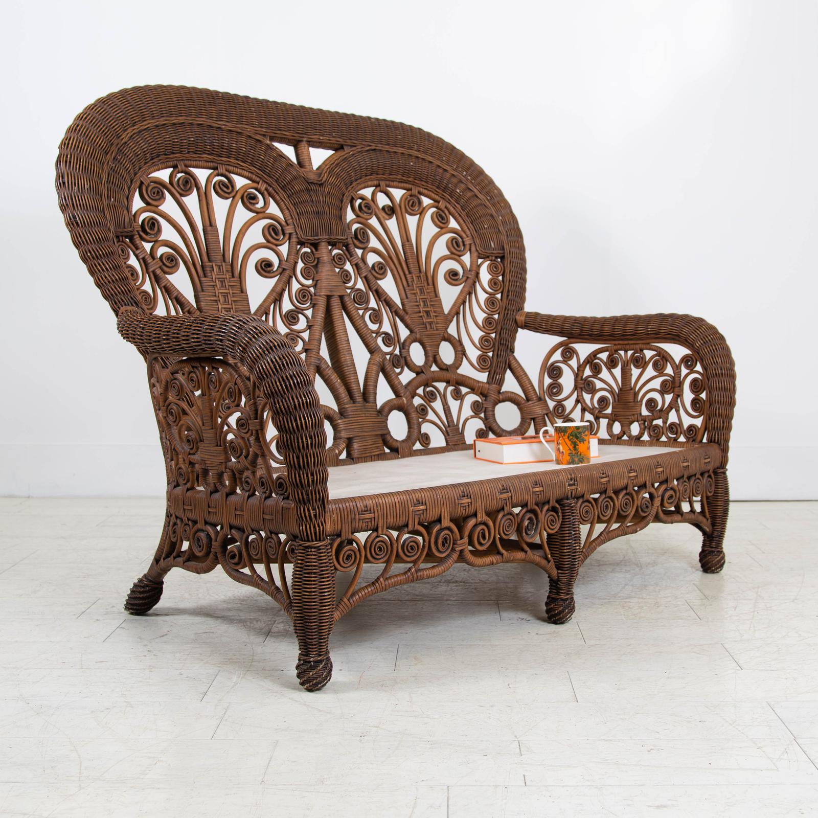 Fabulous 20th Century Boho Wicker Sofa Garden Seat