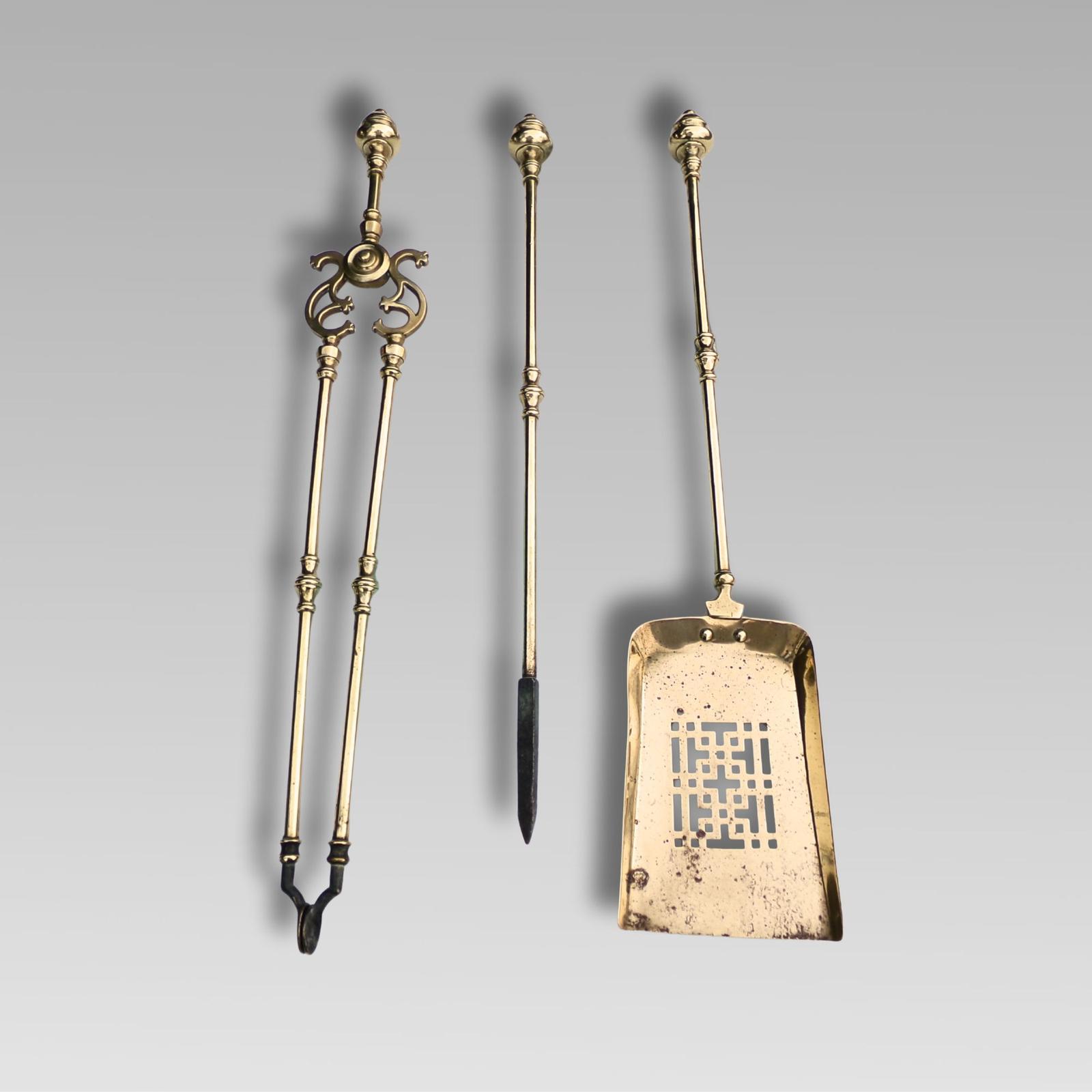 Original Quality Antique 19th Century Polished Brass 3 Piece Companion Set, Poker, Shovel & Tongs
