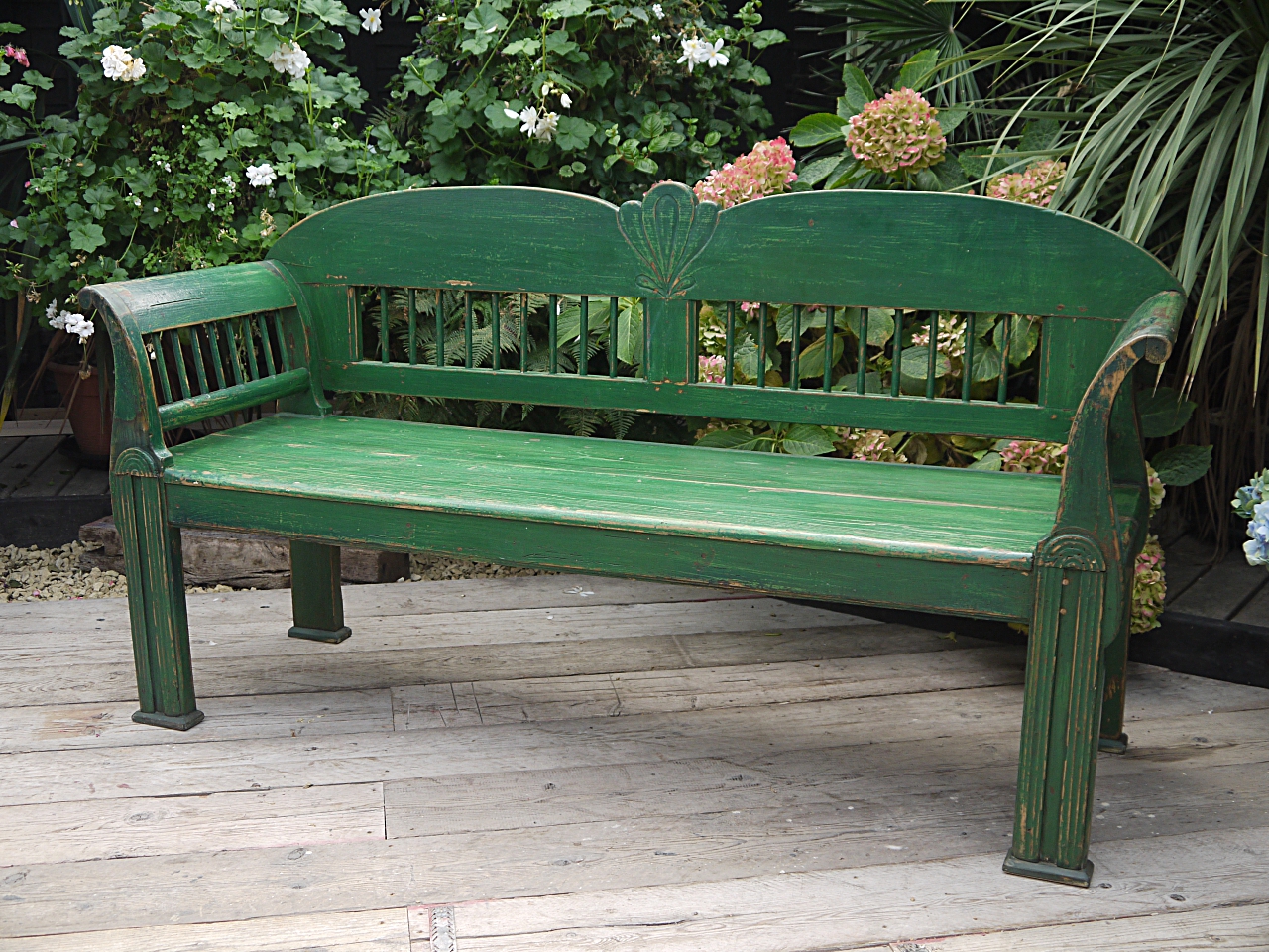 Fabulous! Antique (Very Art Deco But Is Older) Pine & Painted (Old Paint!) Bench