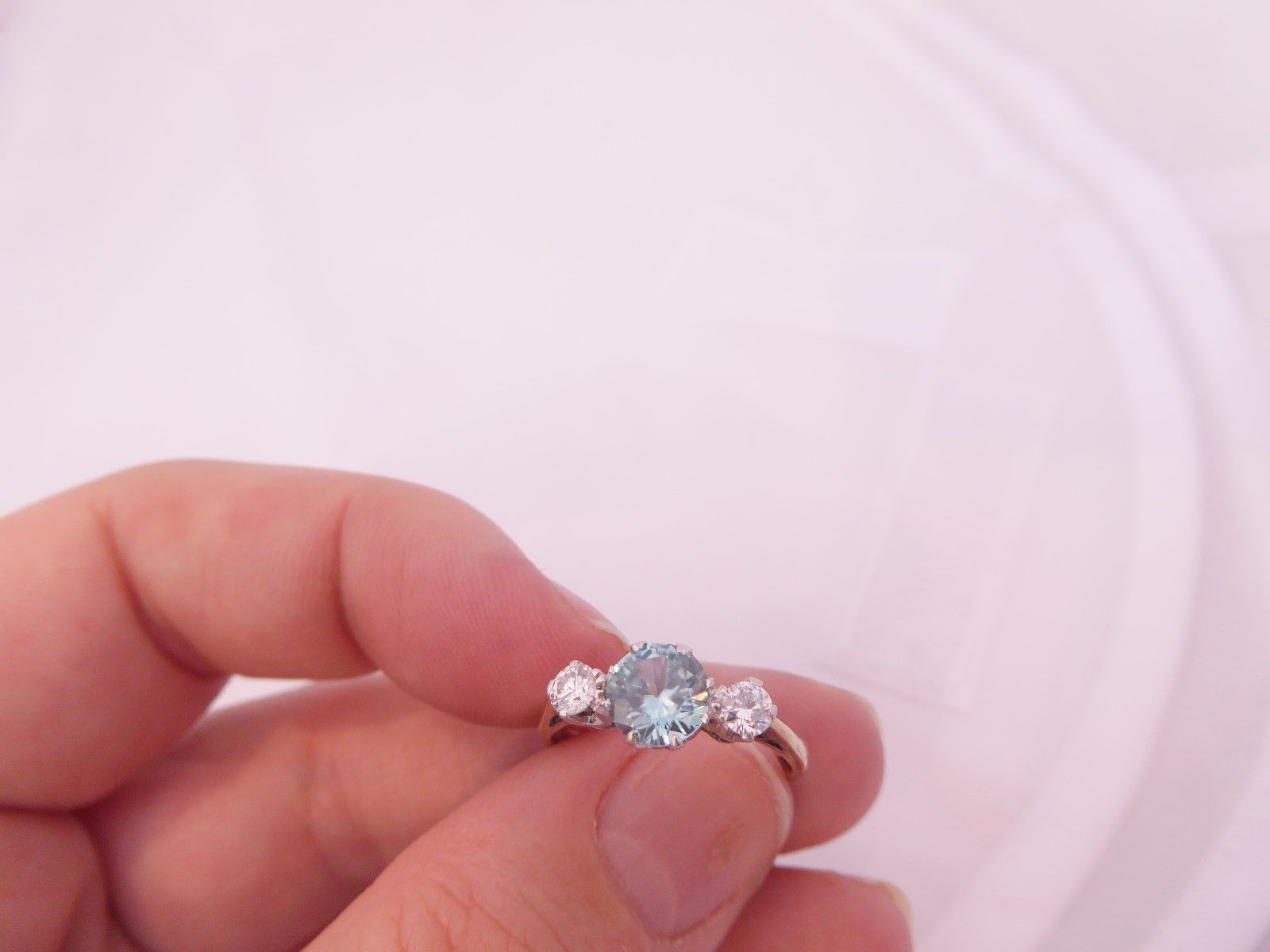 Fabulous Art Deco 18ct Gold & Plat Blue Zircon & Diamond Ring