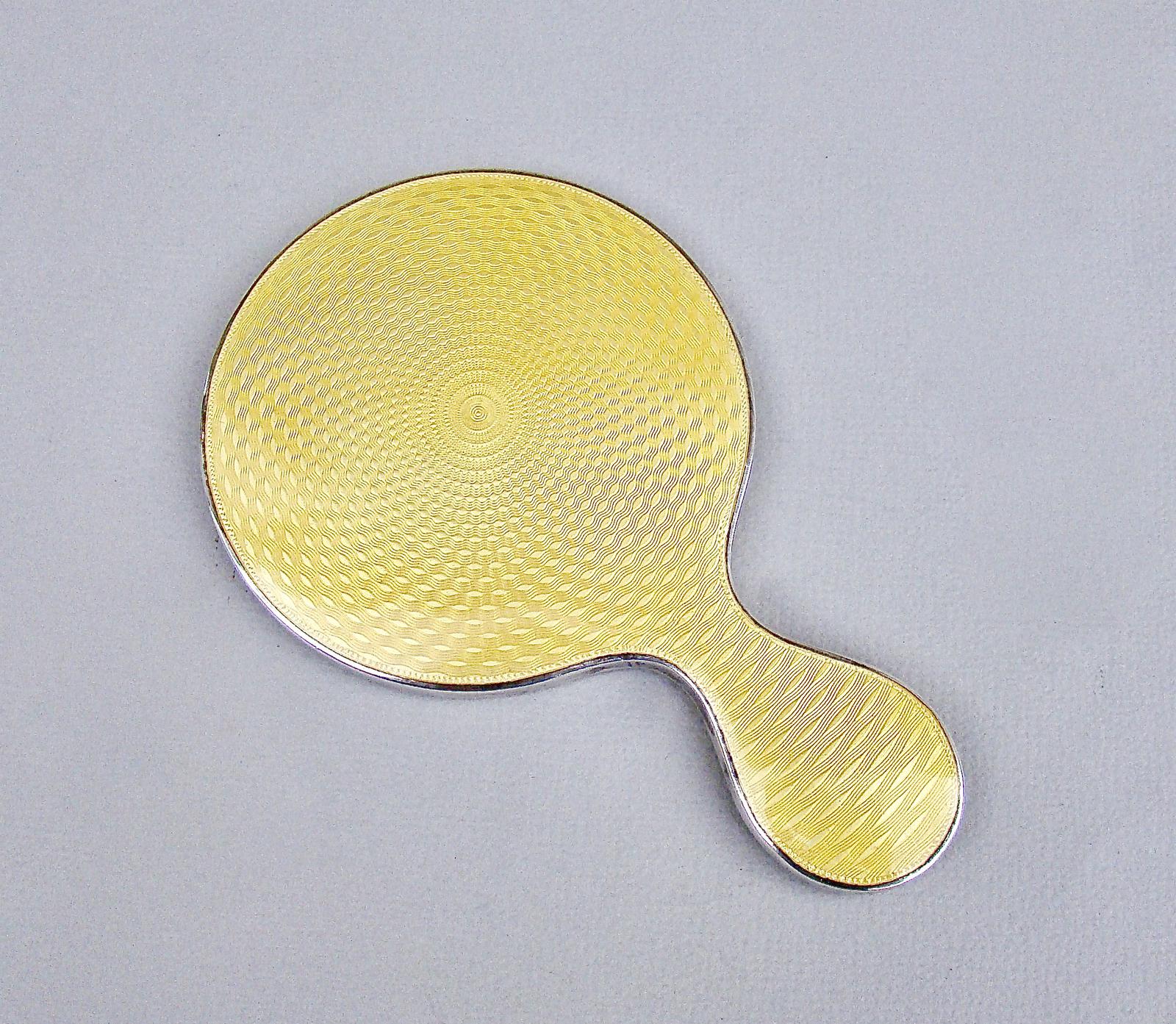 Fabulous Art Deco Silver & Guilloche Enamel Large Purse Mirror by William Neale, Birmingham 1928