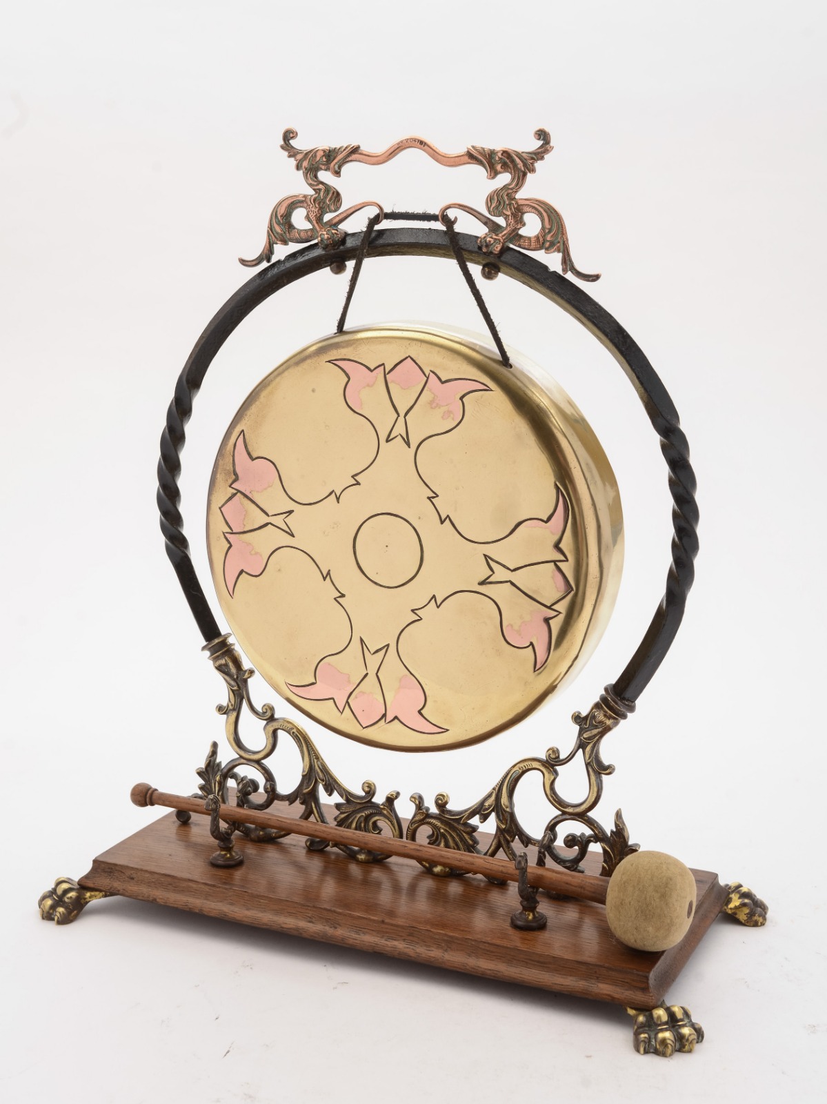 Fabulous Arts & Crafts Brass & Oak Dinner Gone, 1892