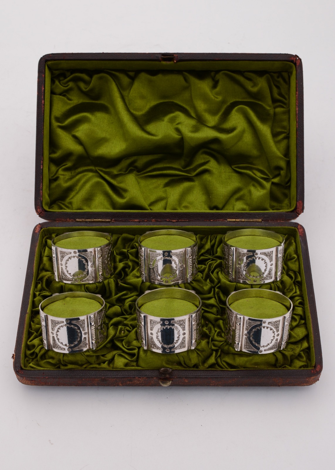 Fabulous Cased Set of 6 Napkin Rings c.1890