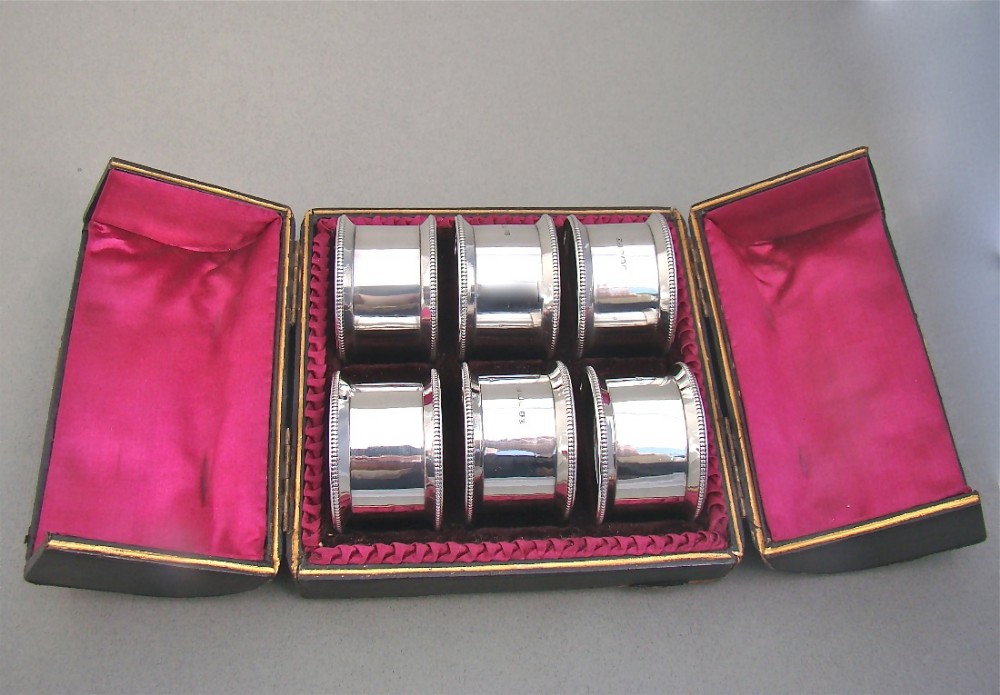 Fabulous Cased Set of 6 Solid Silver Napkin Rings by C T Burrows & Sons, Birmingham 1933