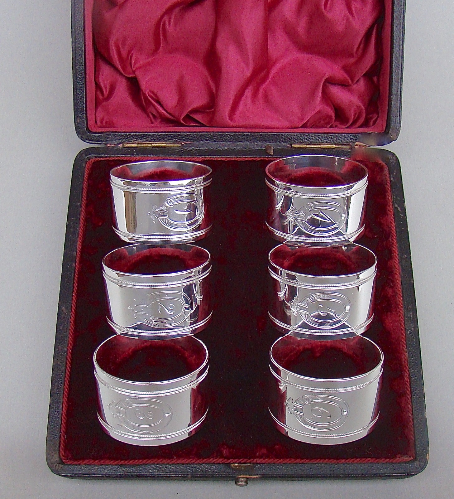 Fabulous Cased Set of Six Victorian Silver Plated Numbered Napkin Rings, c.1890