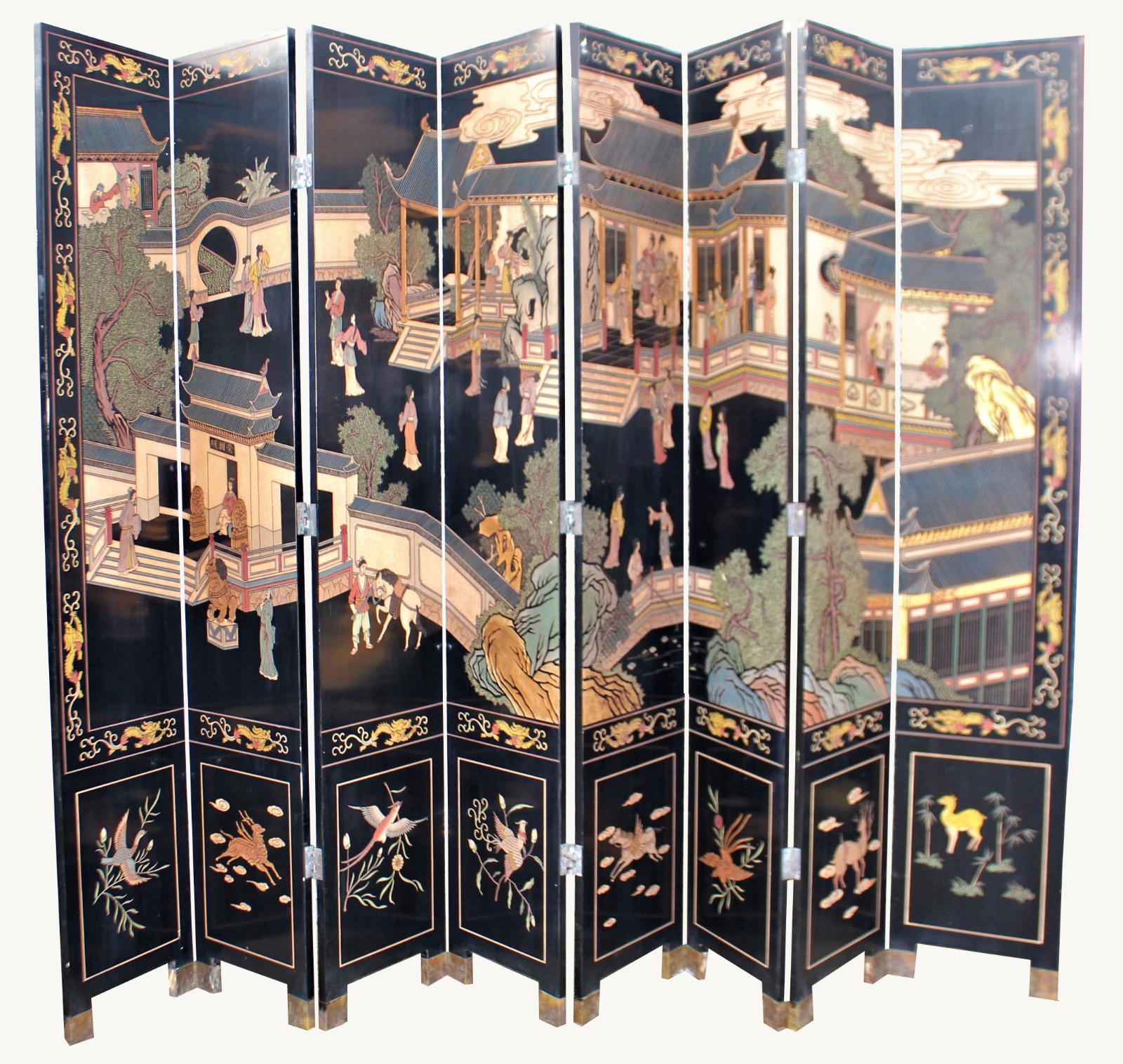 Fabulous Chinese Lacquered Tall Eight Panel Screen C.1920