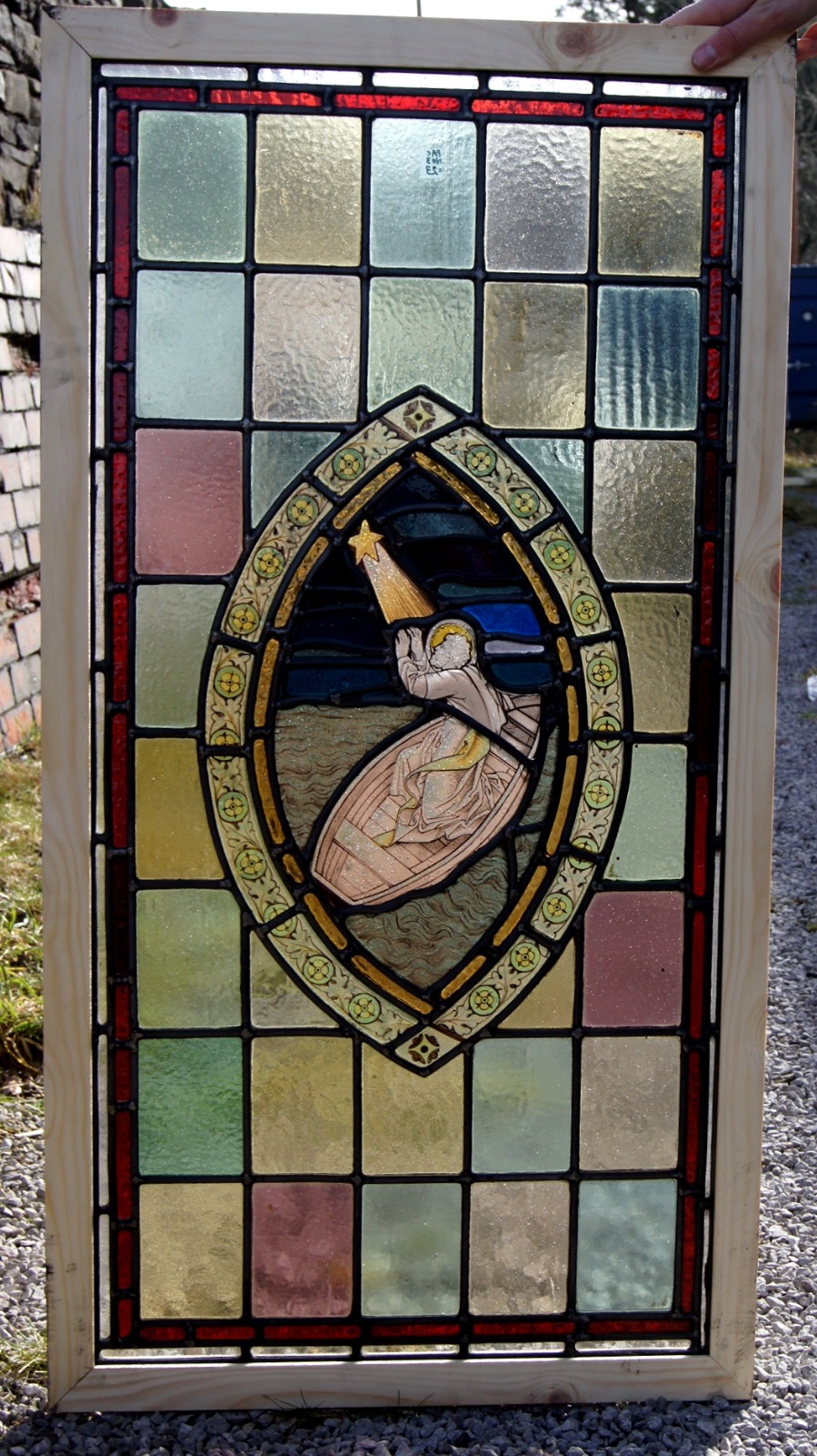 Fabulous Crisp Leaded Glass Painted Scene Window
