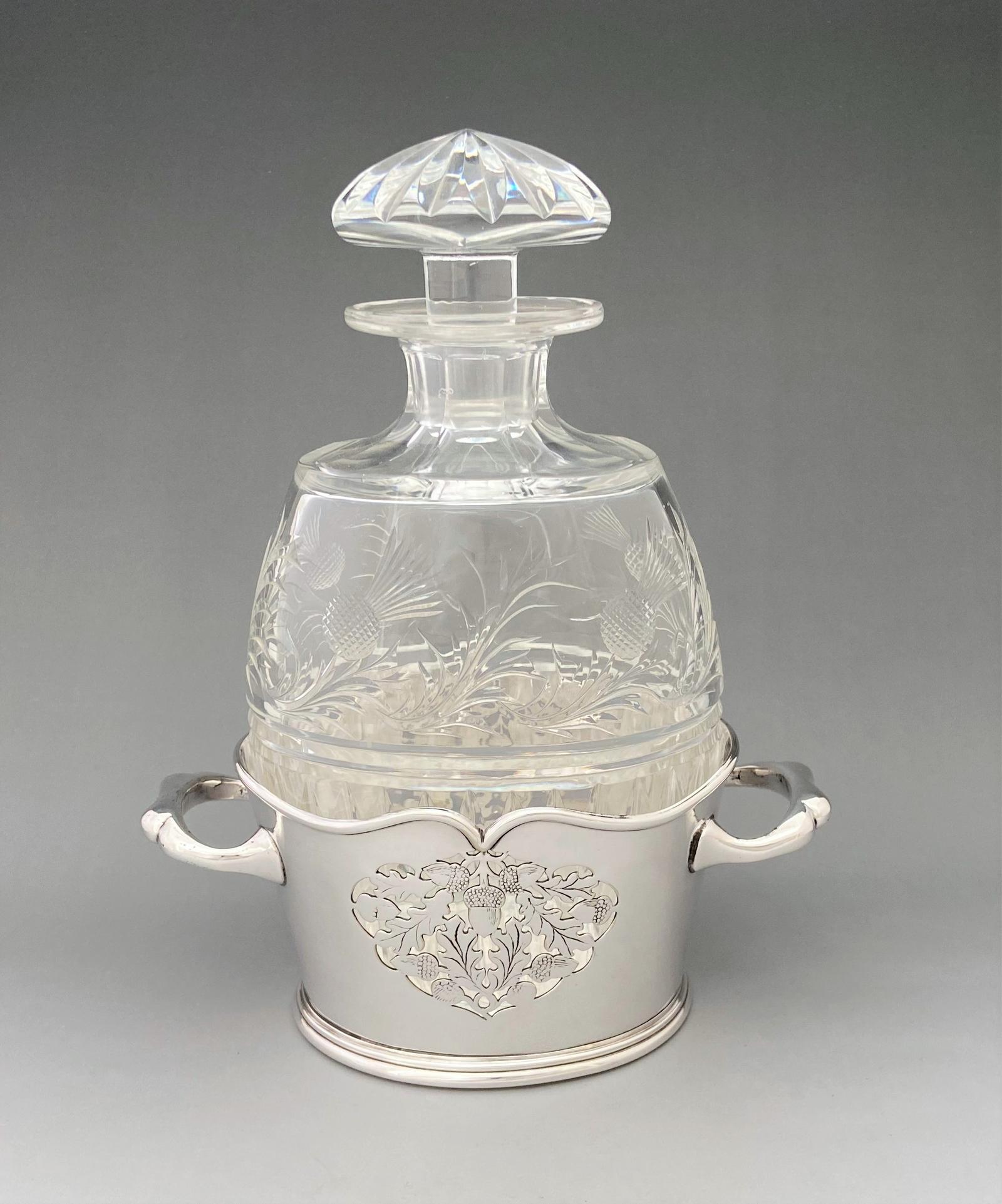 Fabulous Cut Glass Decanter with Silver Plated Holder