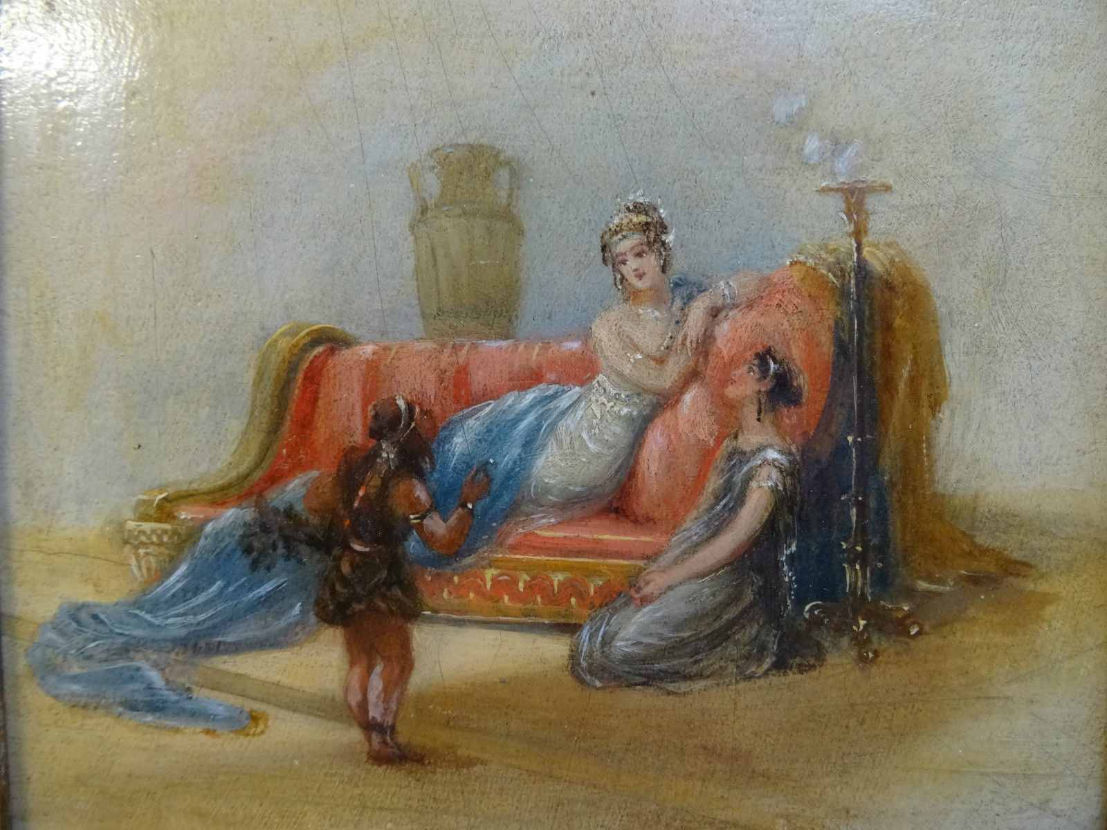 Fabulous Early 20thc Oil on Oak Panel Painting 'A Greek Goddess with Slave Boy'