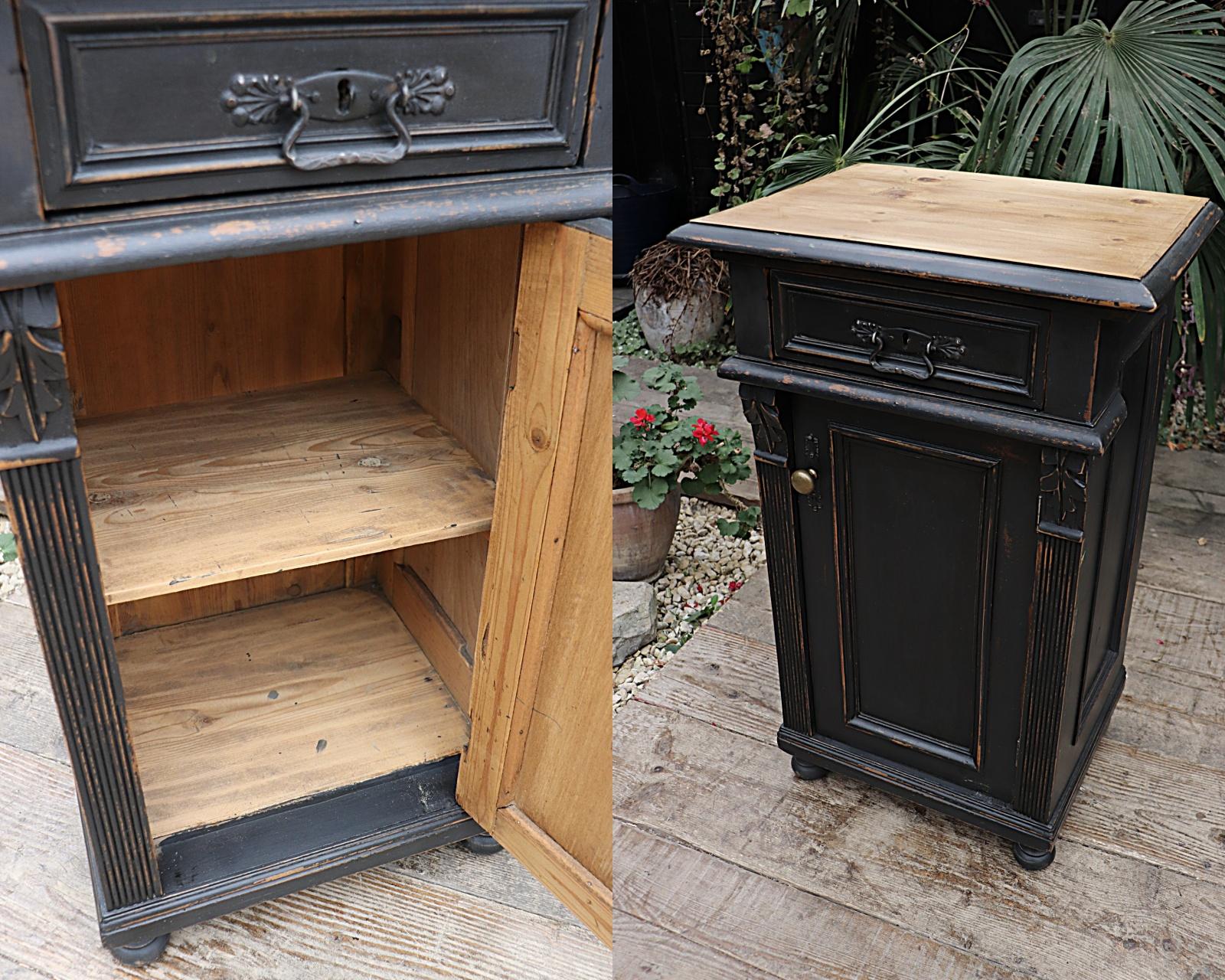 Fabulous & Exceptional Quality Old Victorian Pine/ Black Painted Bedside Cabinet/ Cupboard/ Lamp Table