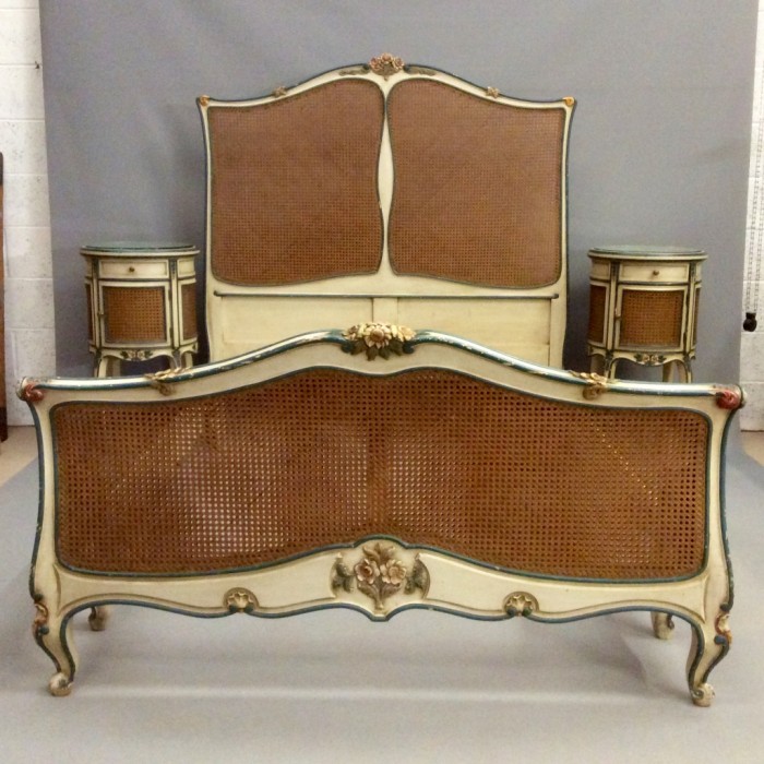 Fabulous French Antique Cane Bed & Bedside Cabinets c.1900