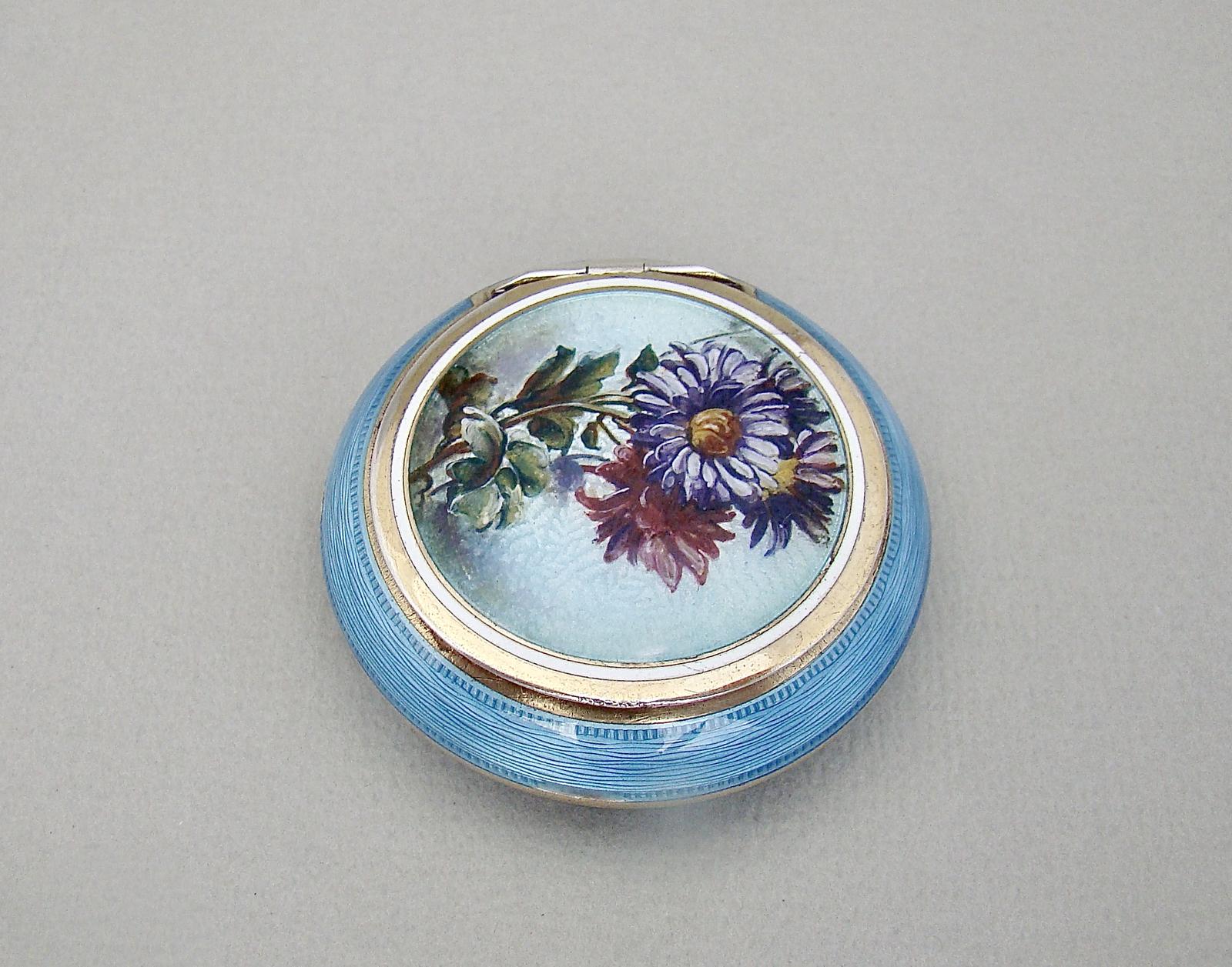 Fabulous French Guilloche Enamel Compact, Import Marks For London 1920