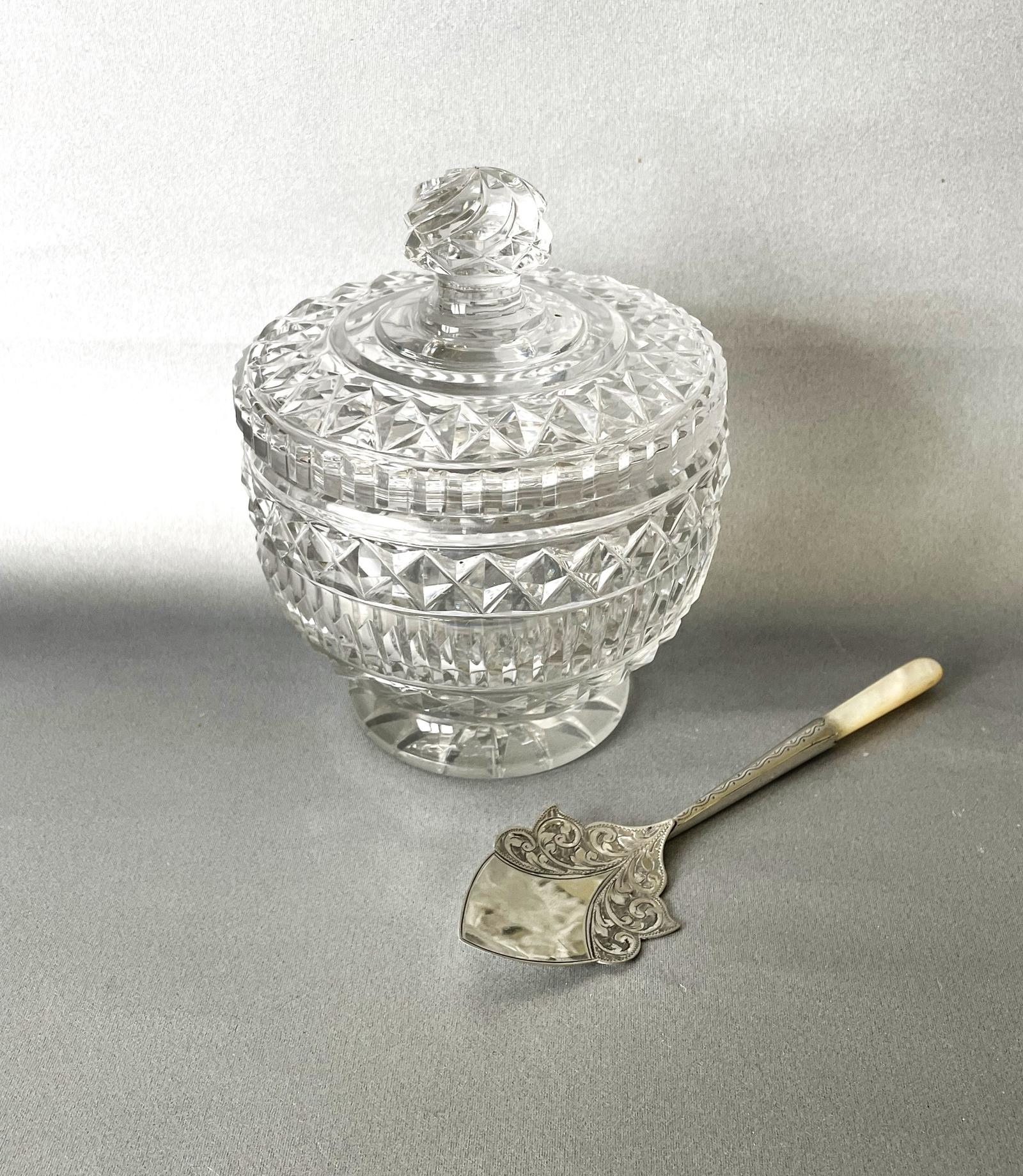 Fabulous Georgian Cut Glass Preserve Jar & Silver Spoon